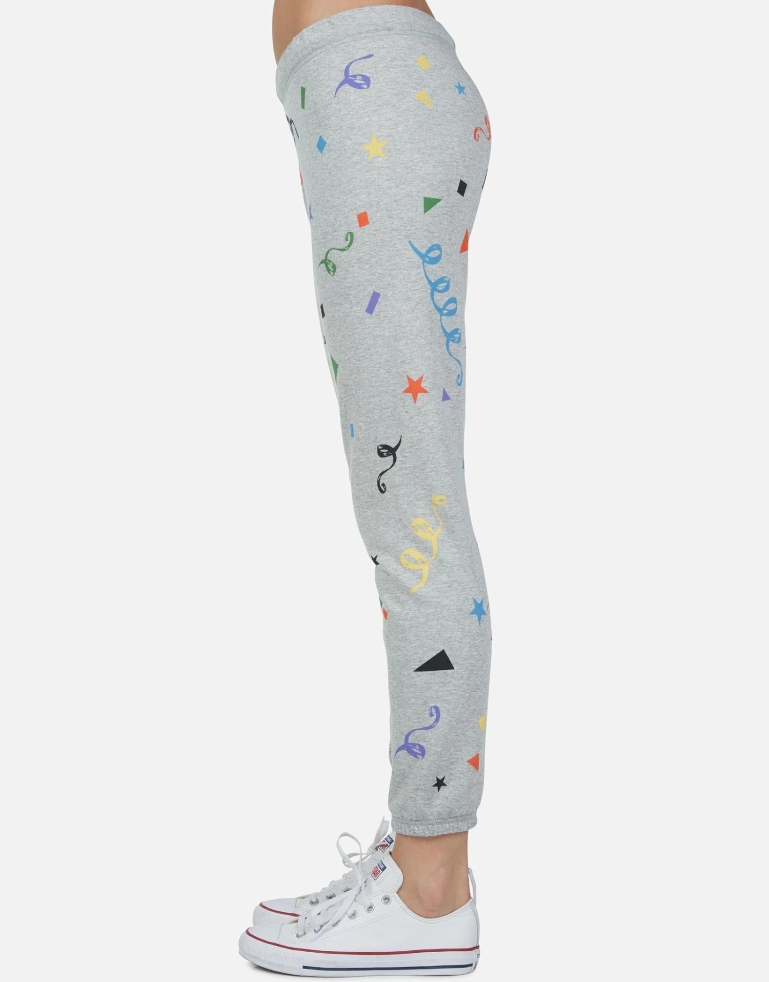 Confetti Printed on Ultra Soft Lightweight Sweatpant in Heather Grey by Lauren Moshi.