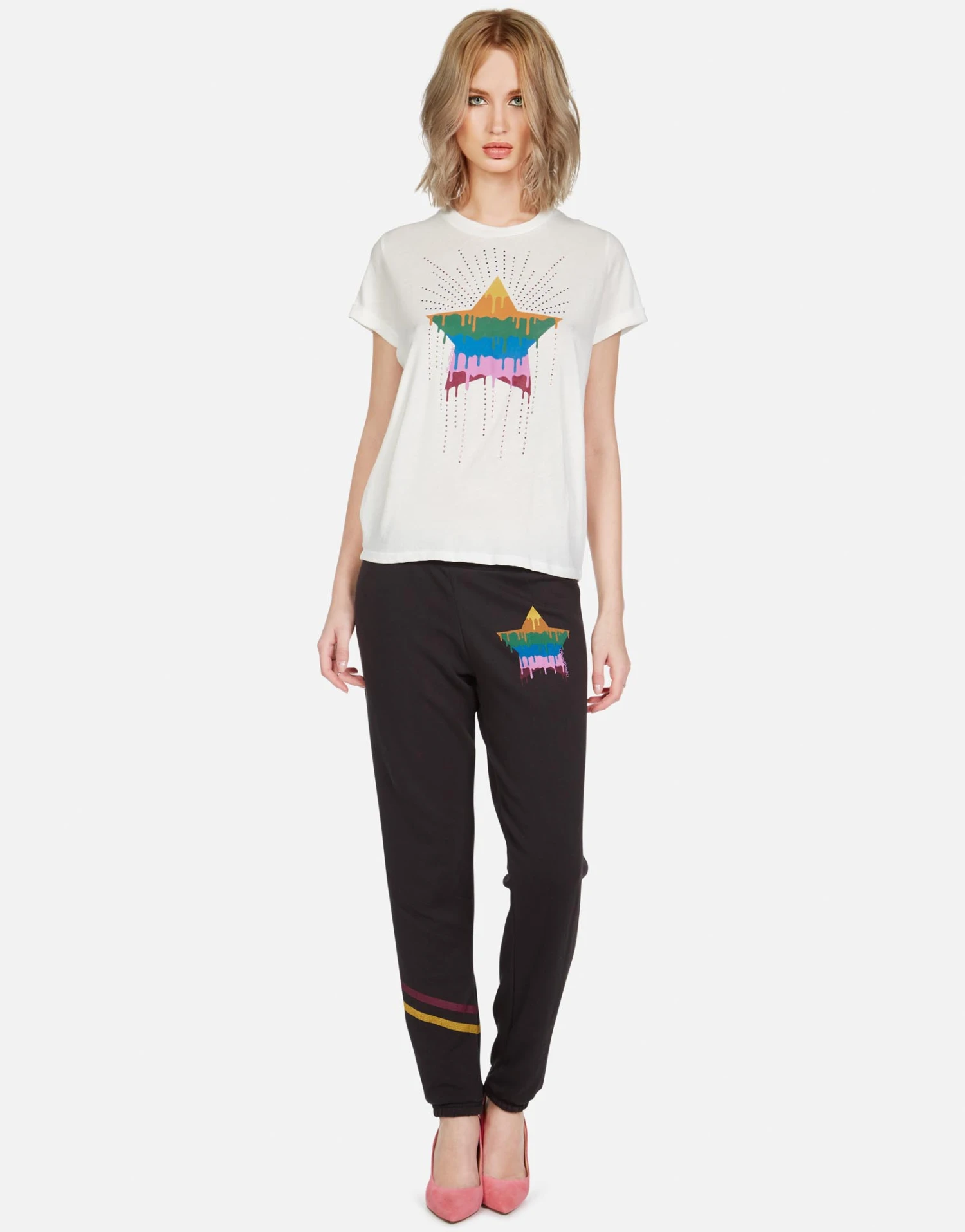 Dripping Star Printed on Ultra Soft Lightweight Sweatpant in Onyx by Lauren Moshi.