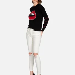 LA Lipstick Printed on Ultra Soft Lightweight Sweatpant in Black by Lauren Moshi.
