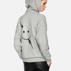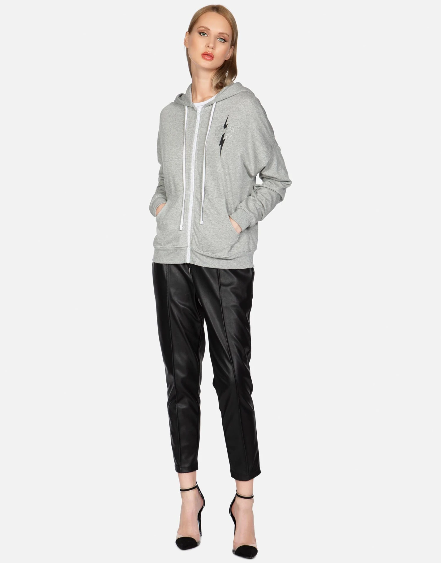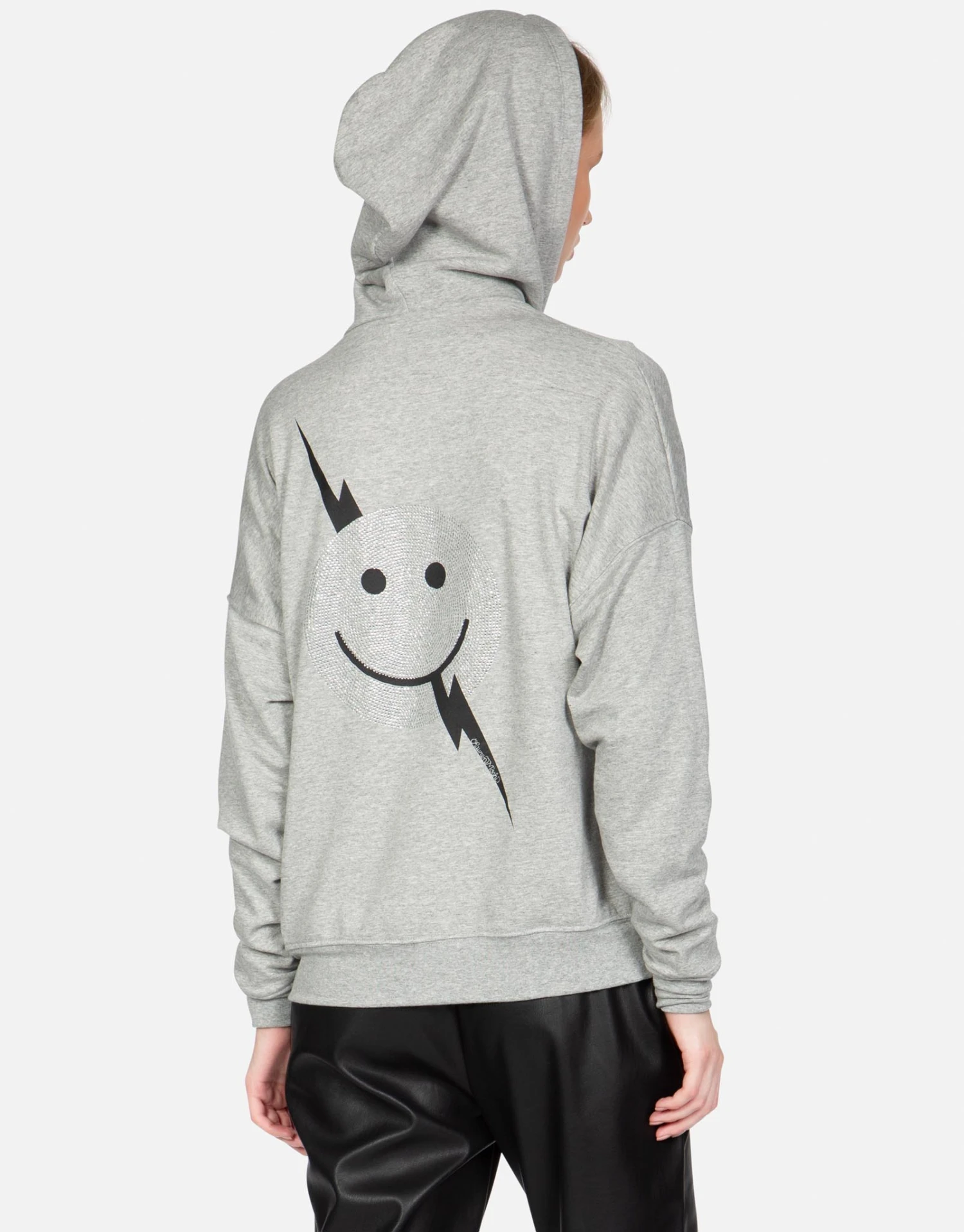 Happy Lightning Love Printed on Ultra Soft Lightweight Hoodie in Heather Grey by Lauren Moshi.