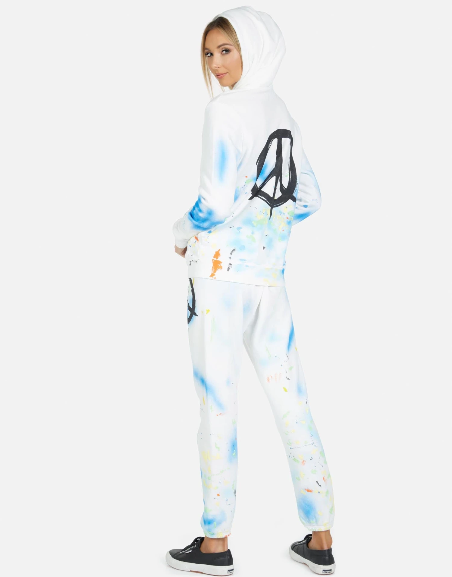 Brush Peace on Ultra Soft Lightweight Sweatpant in White/Paint Splatter by Lauren Moshi.