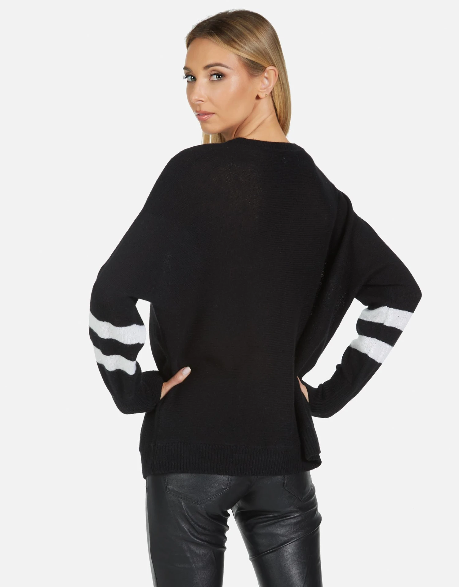 Metallic Star Shark Printed on Ultra Soft Lightweight Cashmere Sweater in Black/Creme by Lauren Moshi.