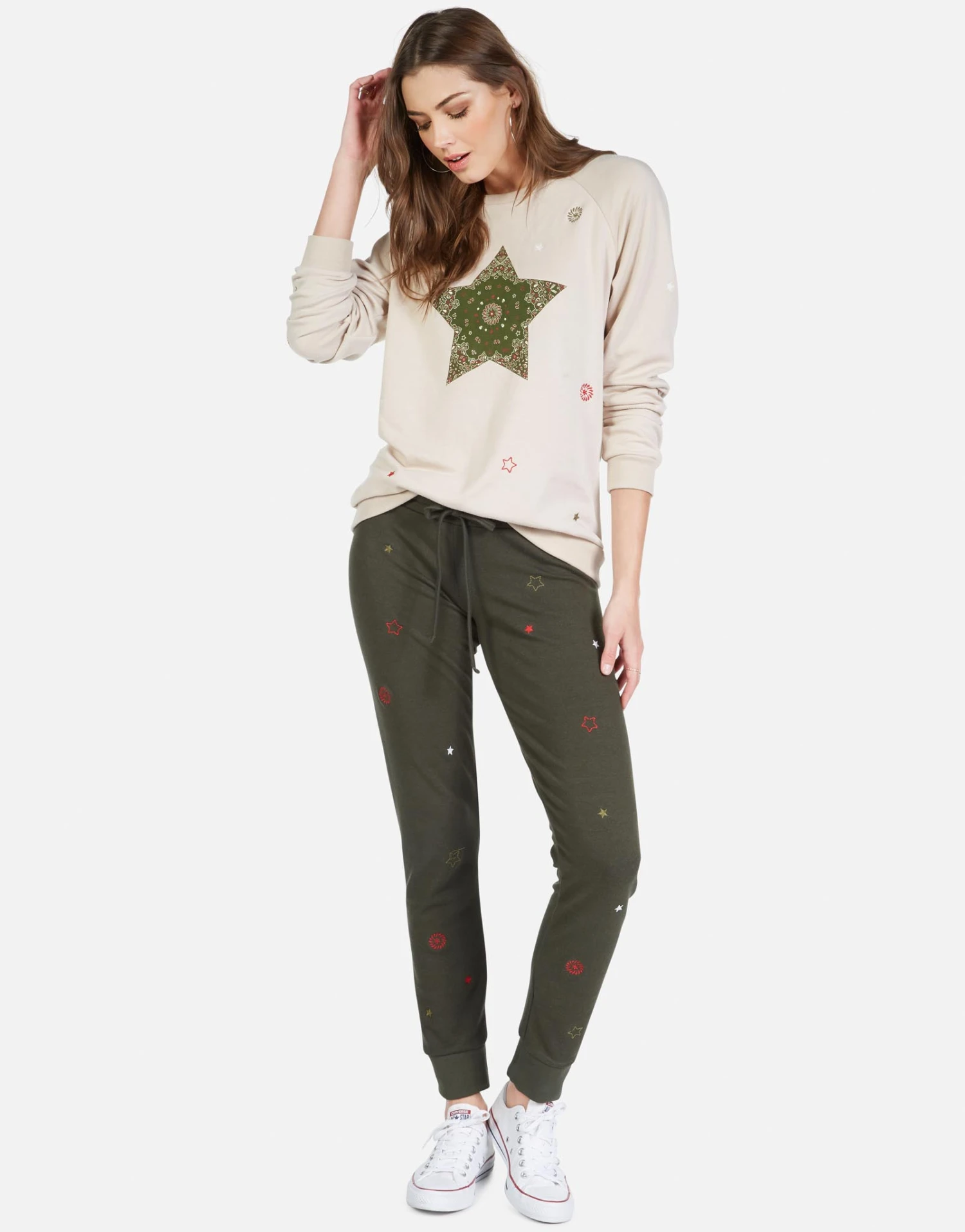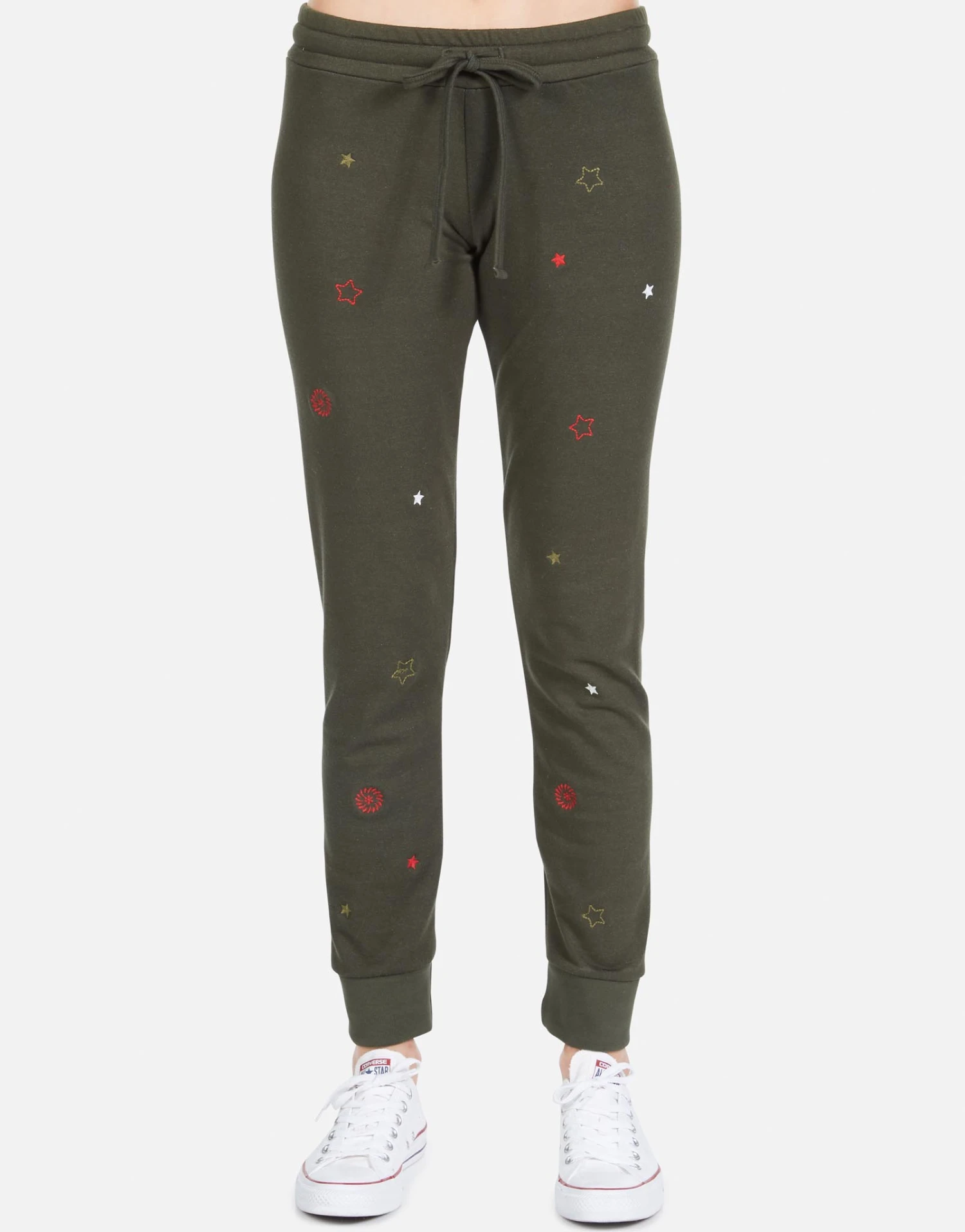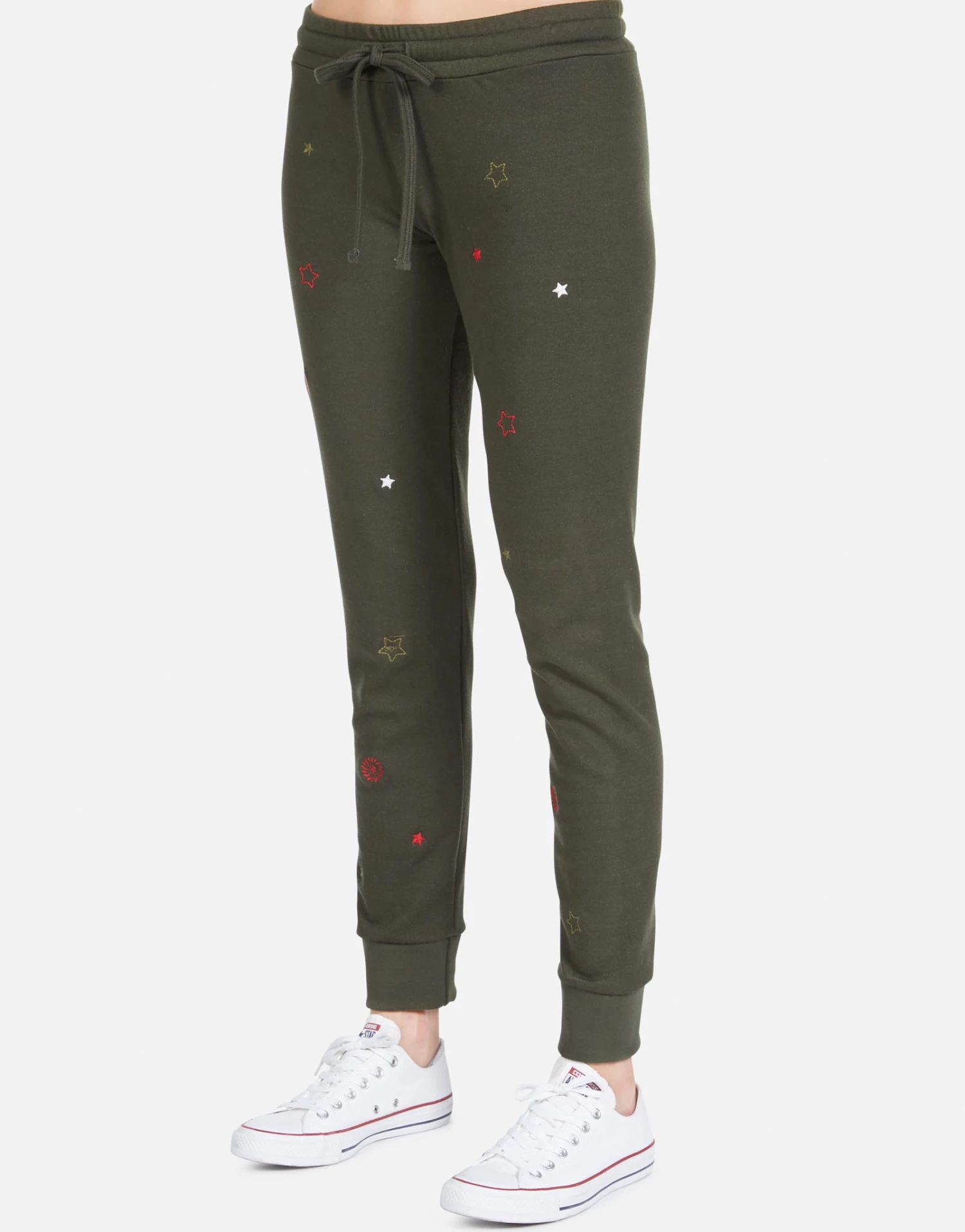 Bandana Elements Embroidered on Super Soft Lightweight Sweatpant in Forest Night by Lauren Moshi.