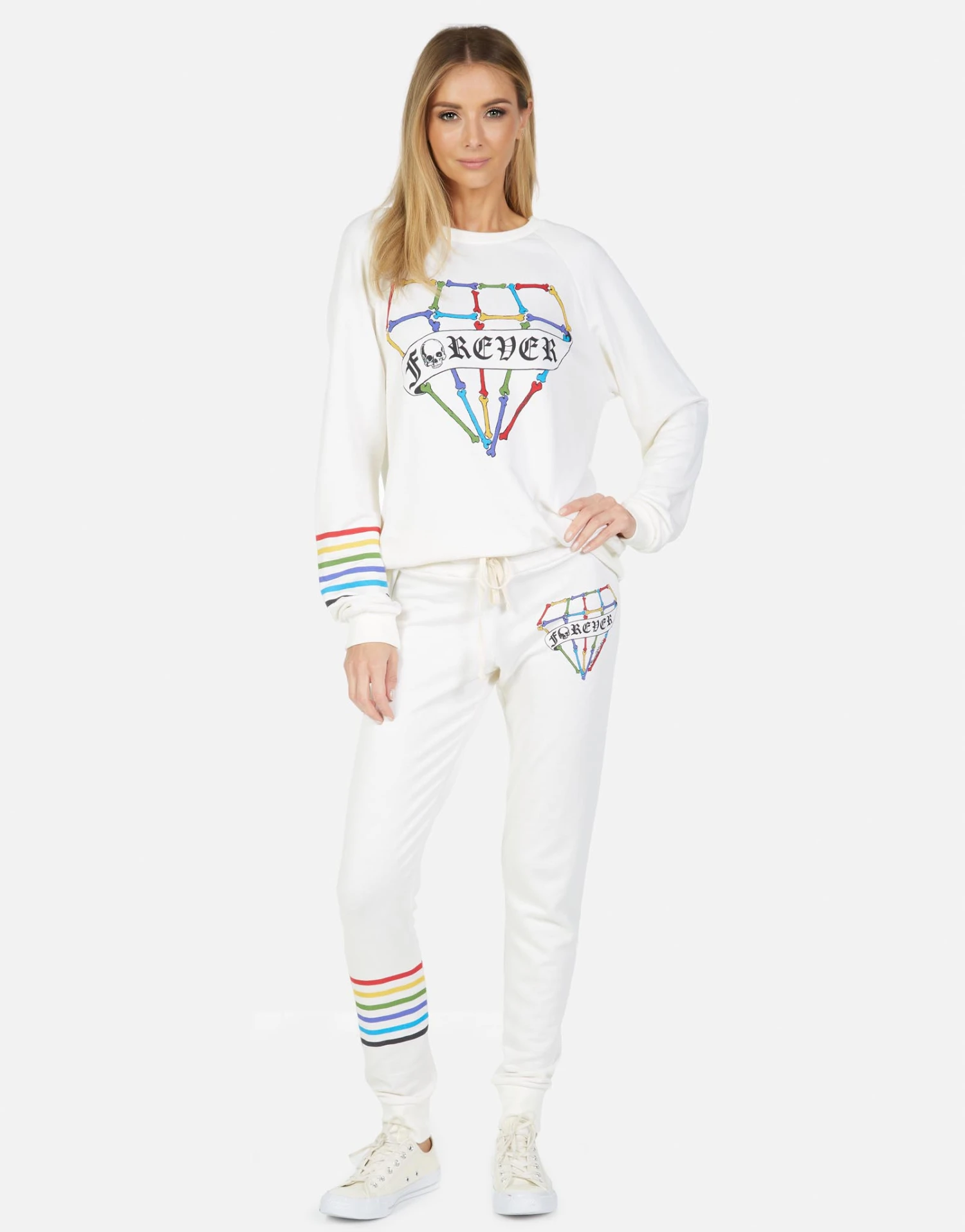 Bone Diamond Printed on Ultra Soft Lightweight Sweatpant in Milk by Lauren Moshi.