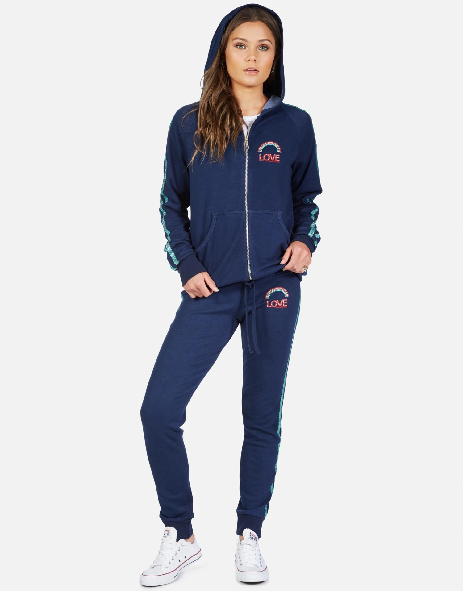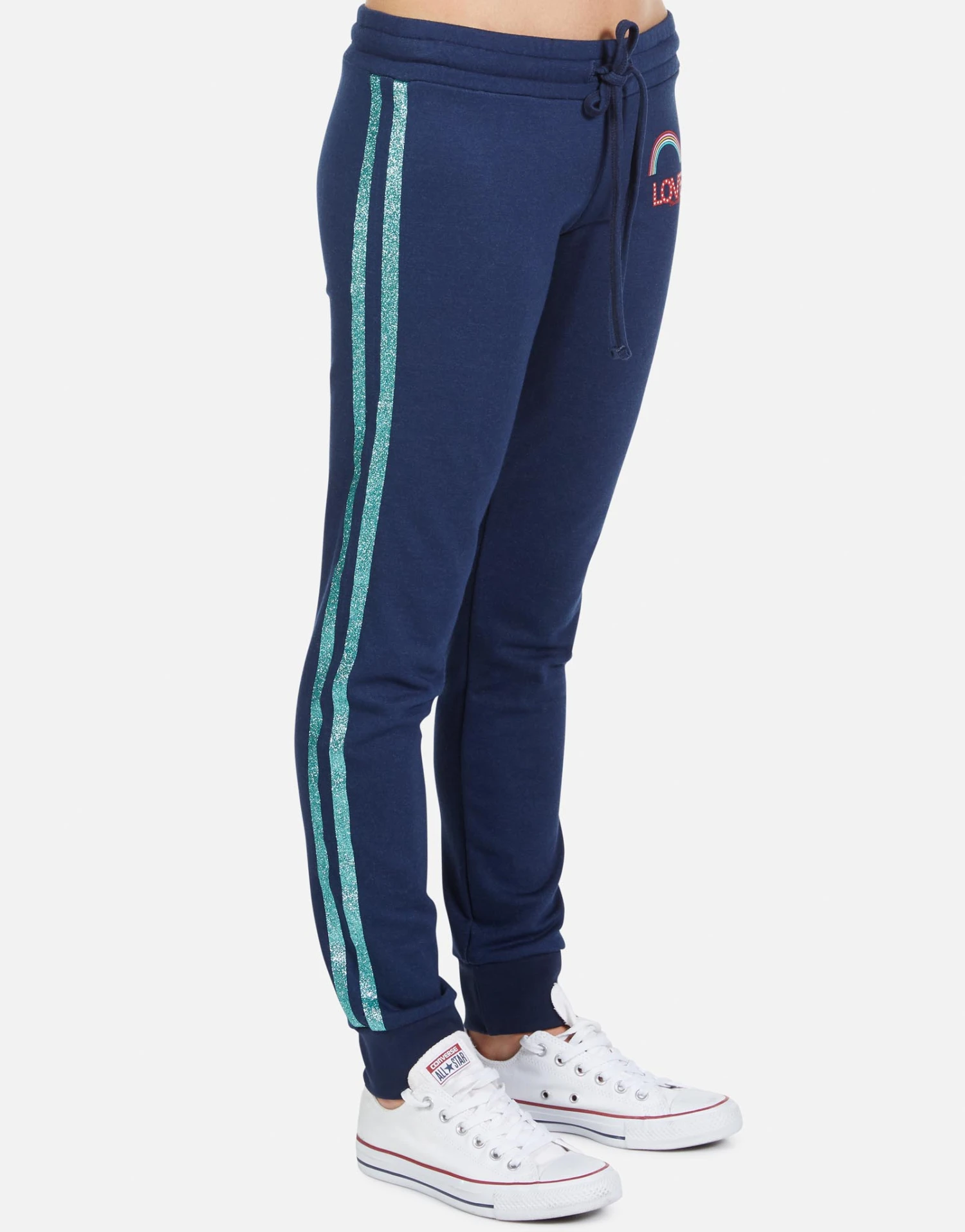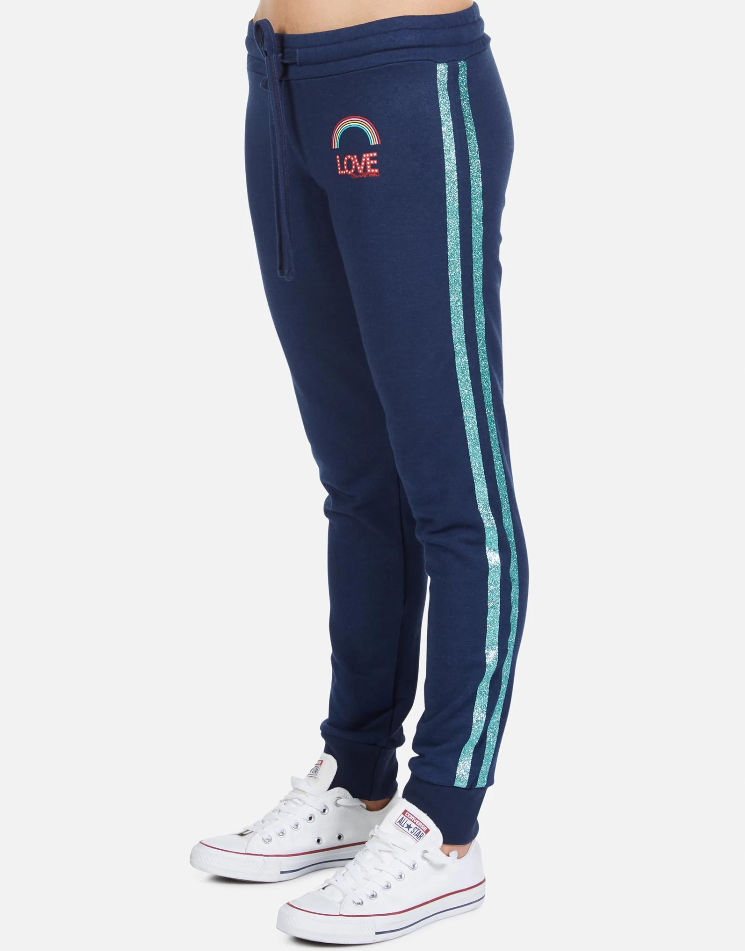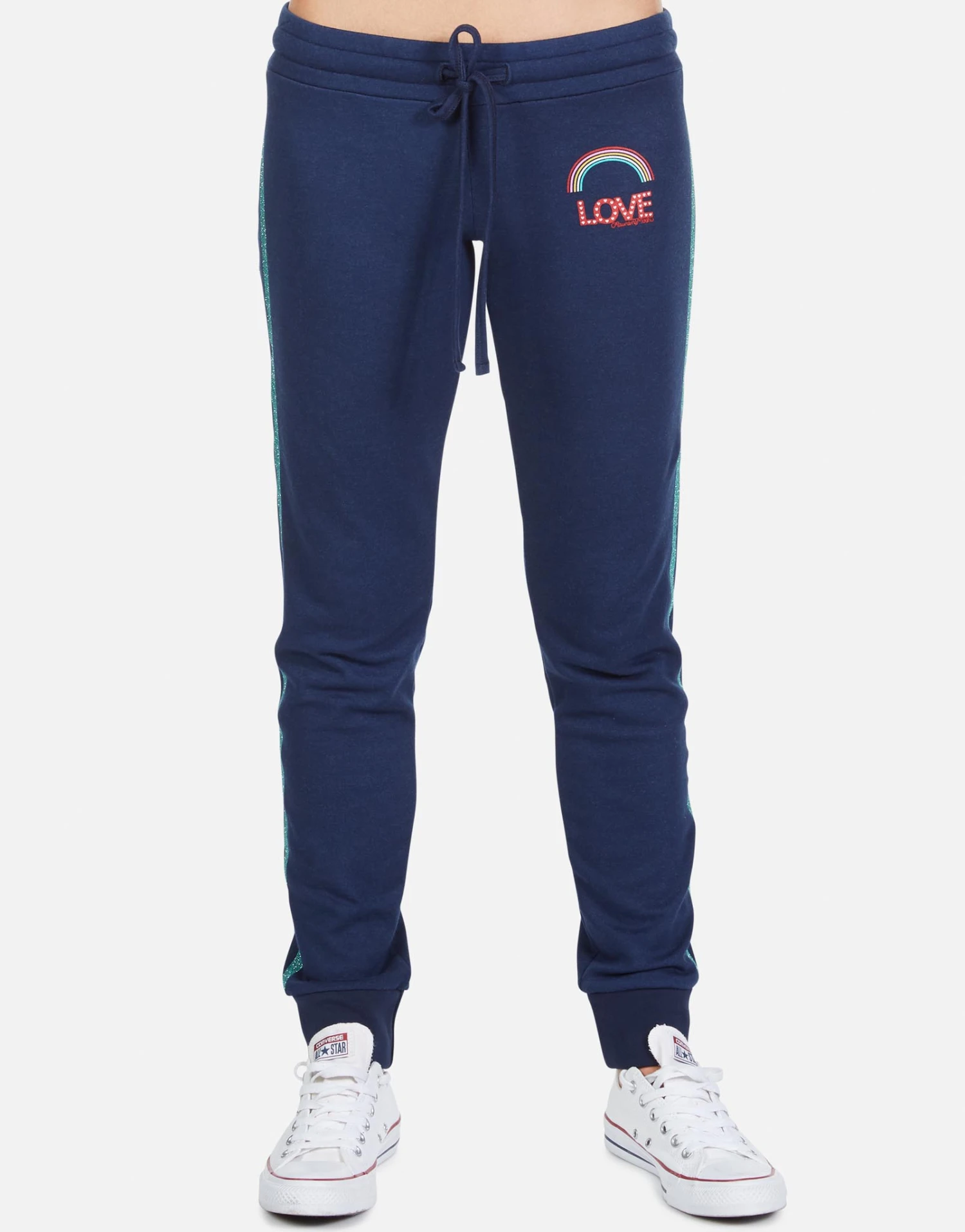 Rainbow Love Printed on Ultra Soft Lightweight Sweatpant in Port Navy by Lauren Moshi.
