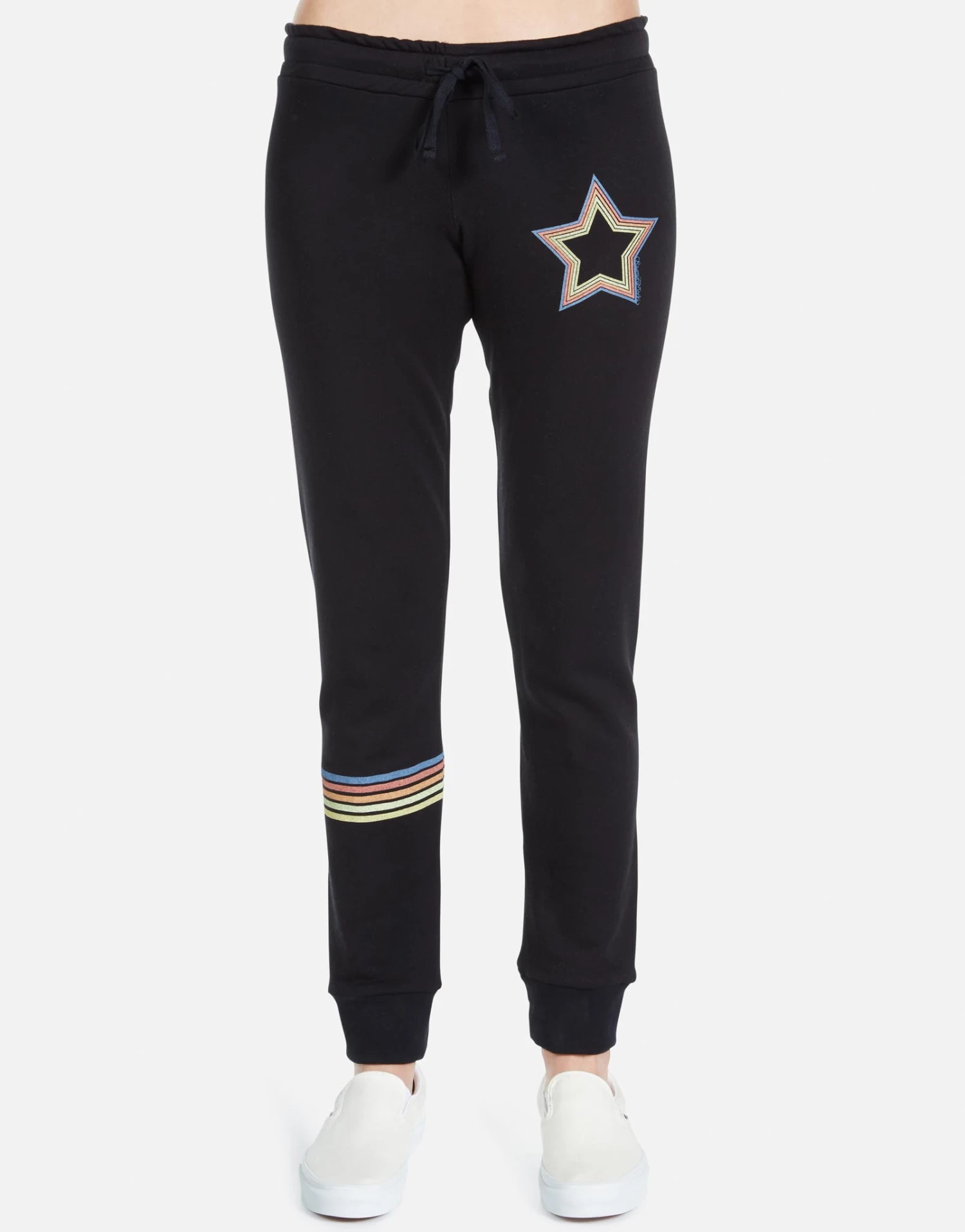 Rainbow Star Printed on Super Soft Lounge Sweatpant in Black by Lauren Moshi.