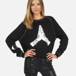 Prayer Hands Printed on Ultra Soft Lightweight Pullover in Black by Lauren Moshi.