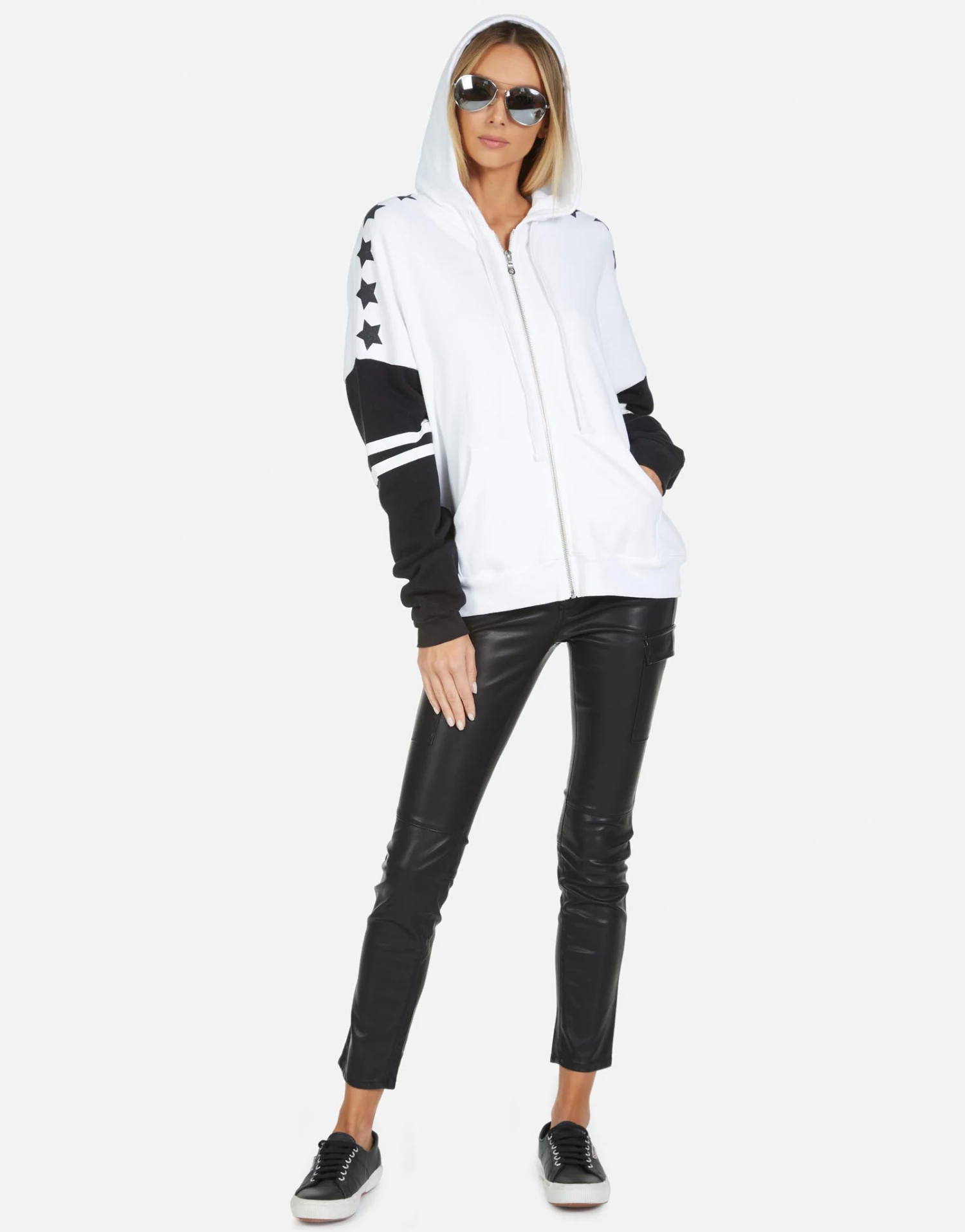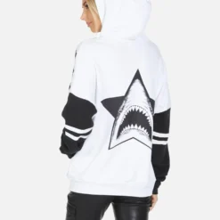 Star Shark Printed on Ultra Soft Lightweight Hoodie in White/Black by Lauren Moshi.