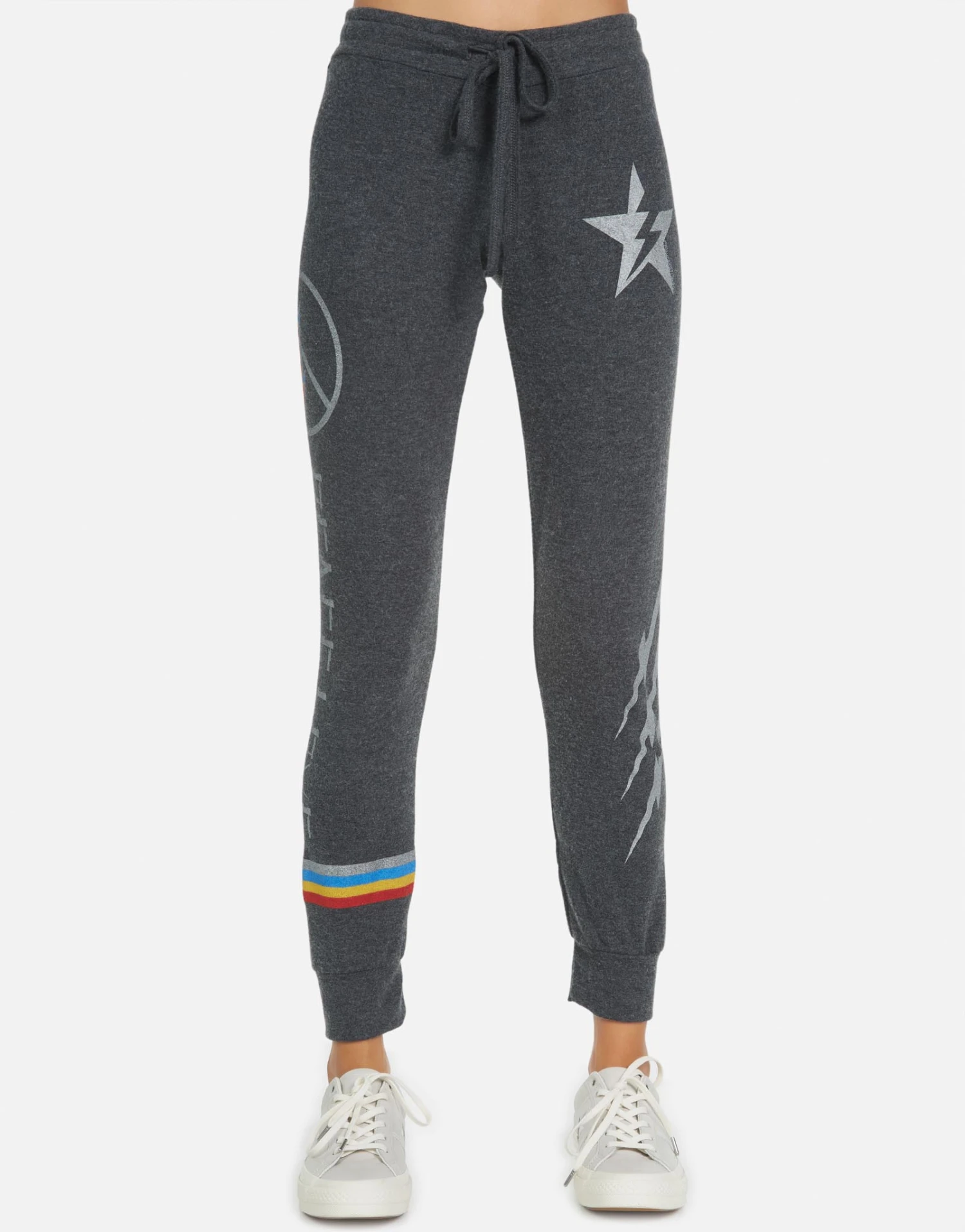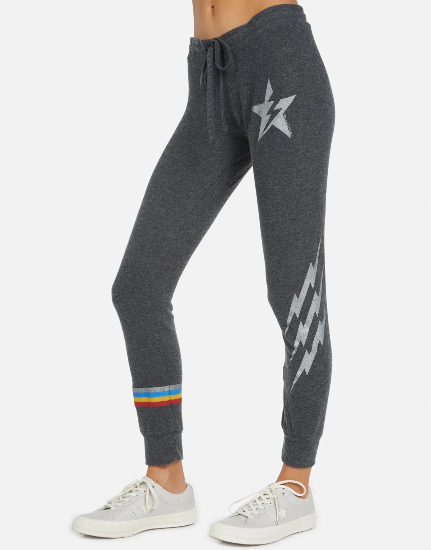 Electric Elephant Elements Printed on Ultra Soft Lightweight Jogger in Heather Black by Lauren Moshi.