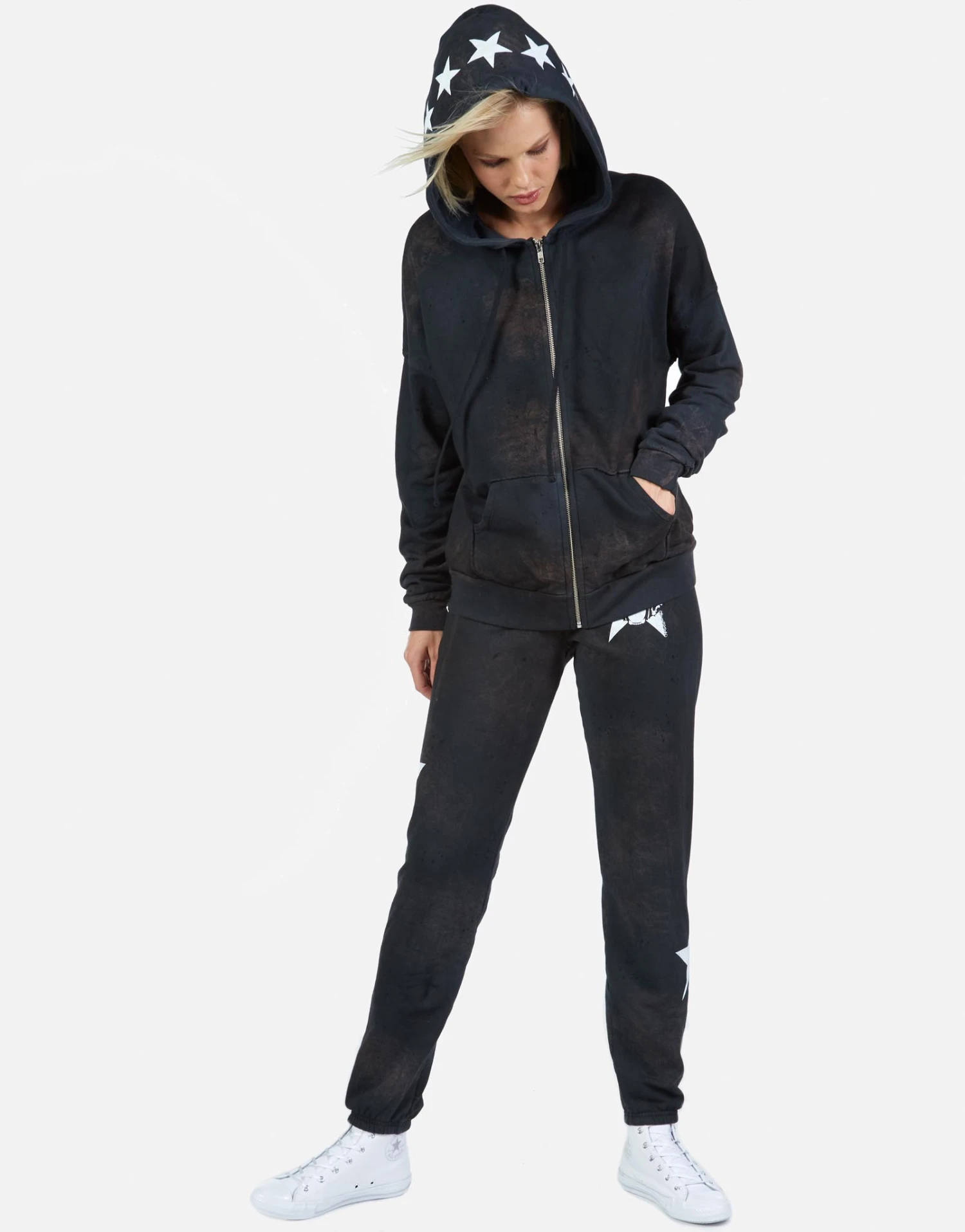 Star Tiger Printed on Ultra Soft Lightweight Hoodie in Onyx Wash by Lauren Moshi.