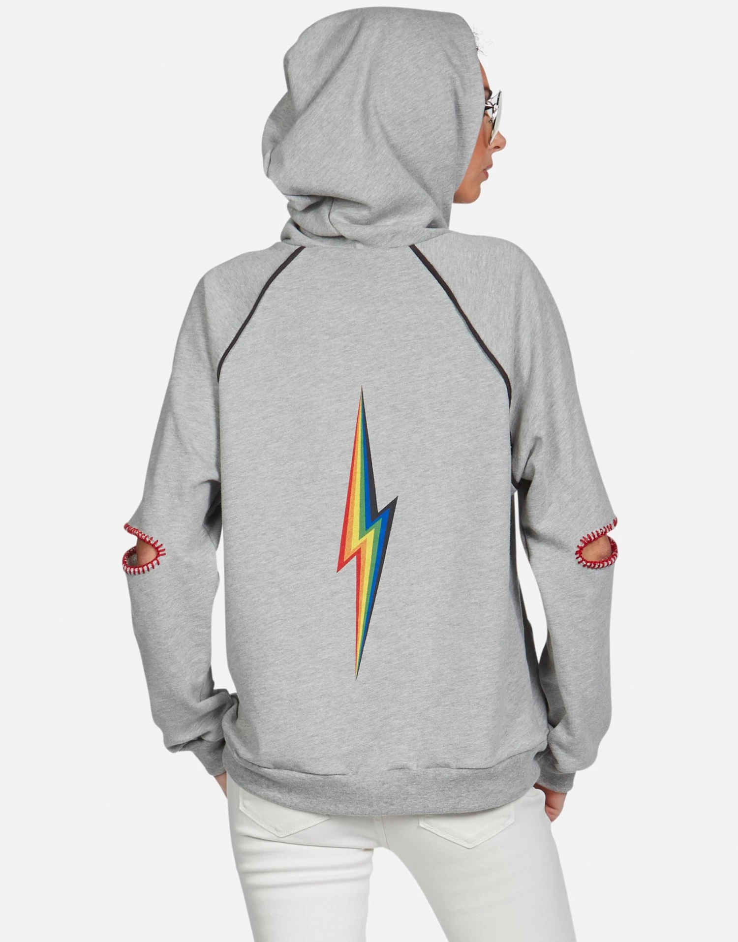 Rainbow Skull Cloud Printed on Ultra Soft Pullover Raglan Pullover Hoodie in Heather Grey by Lauren Moshi.