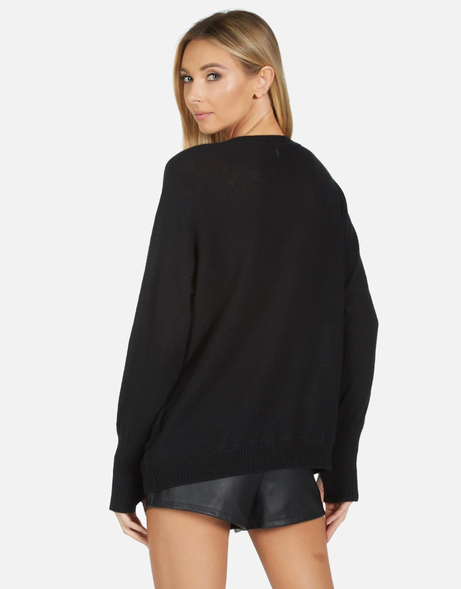 Crystal Gap Tooth Lip on Ultra Soft Lightweight Cashmere Sweater in Black by Lauren Moshi.
