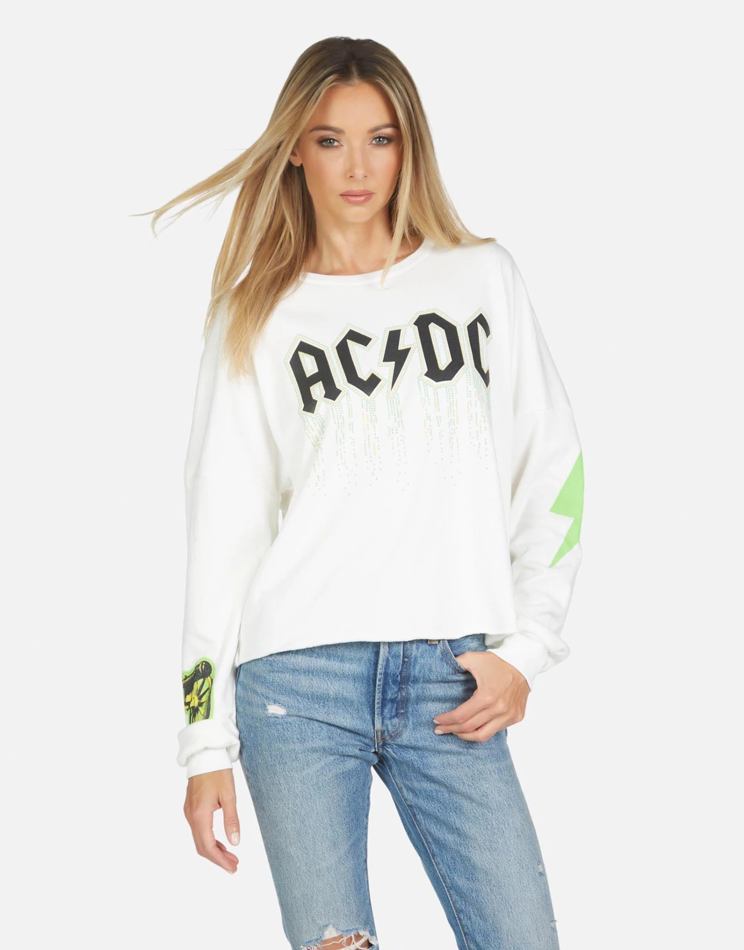 AC/DC Printed on Ultra Soft Lightweight Pullover in Milk by Lauren Moshi.