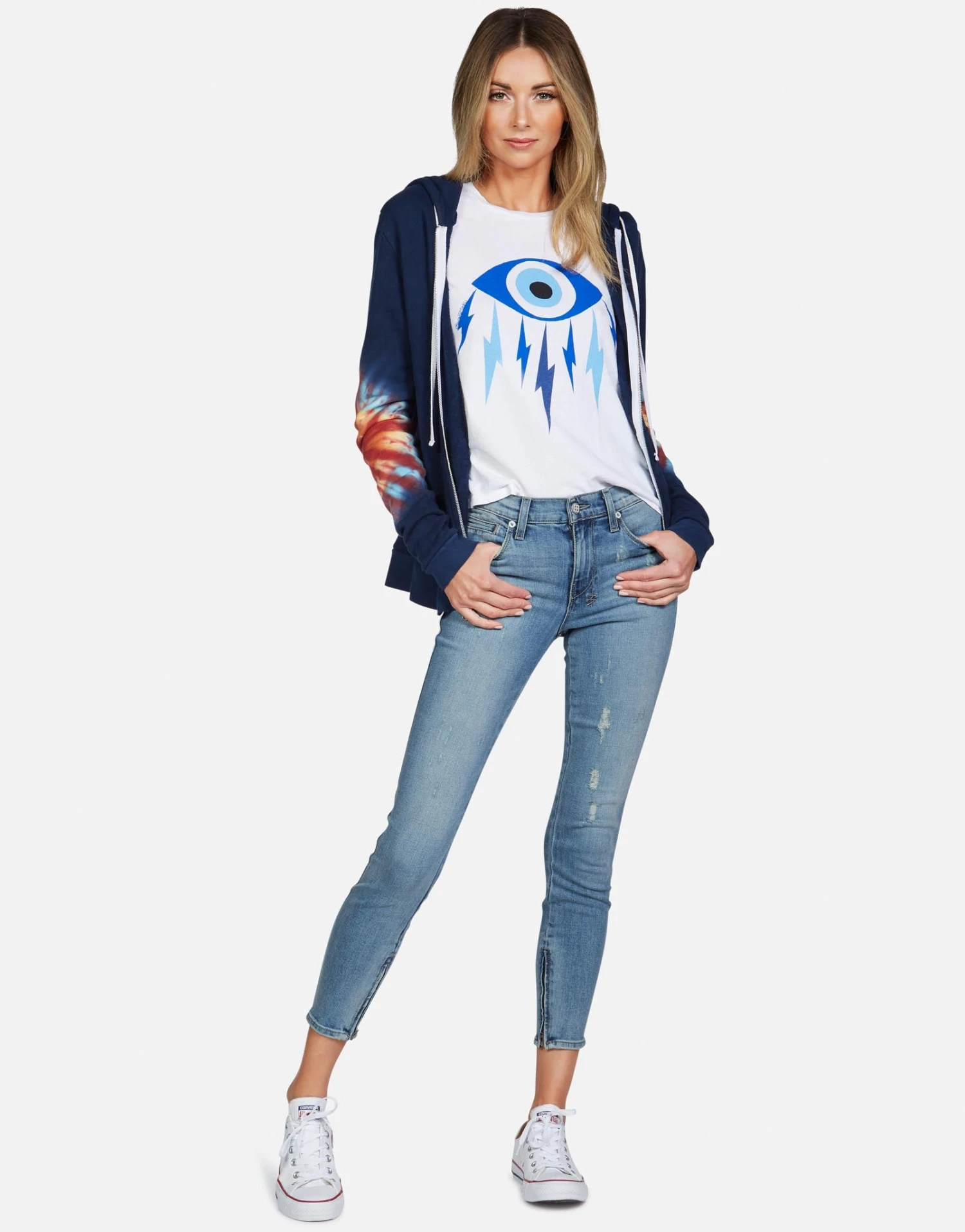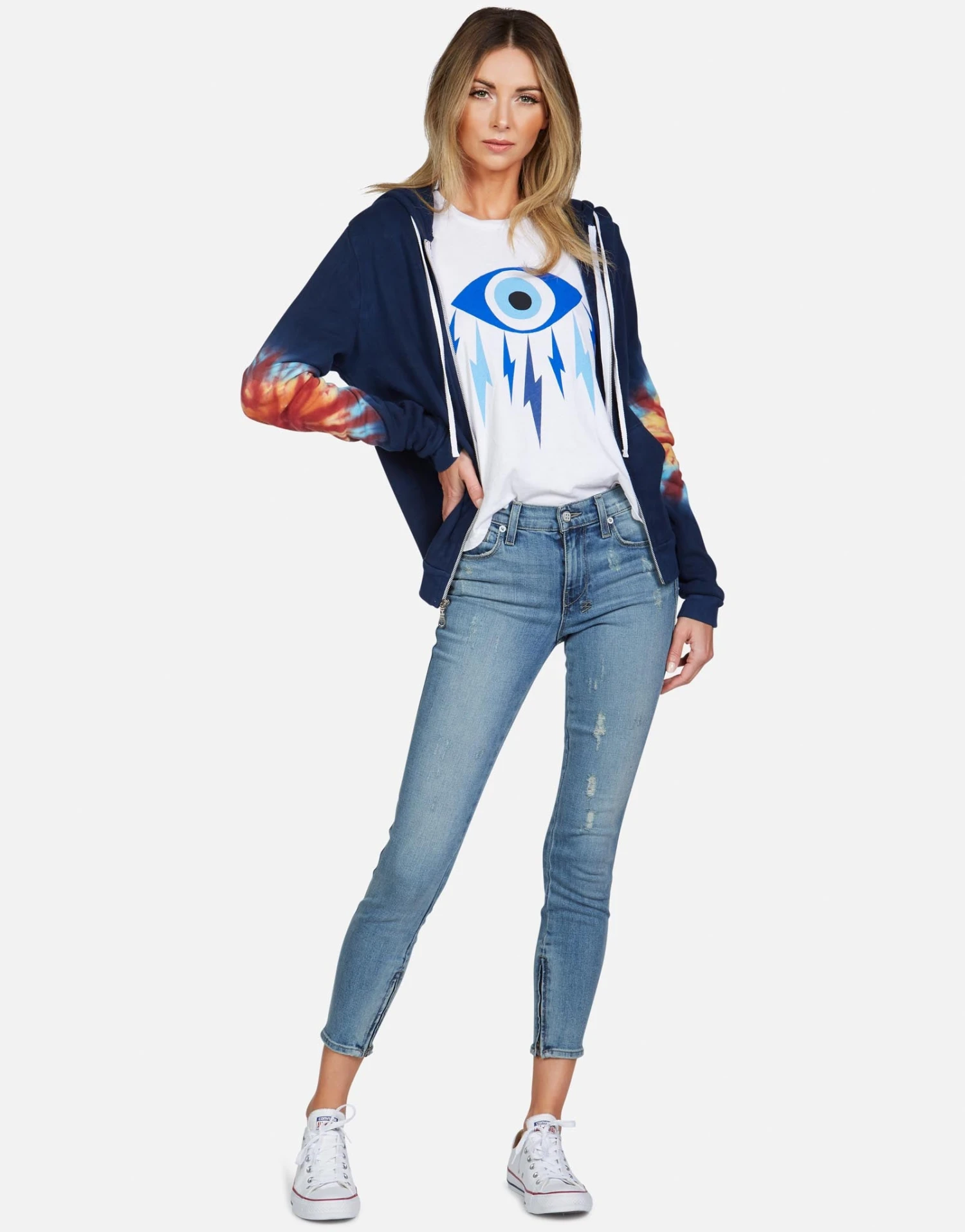 Yellow Lightning Printed on Ultra Soft Lightweight Pullover Hoodie in Sunburst by Lauren Moshi.
