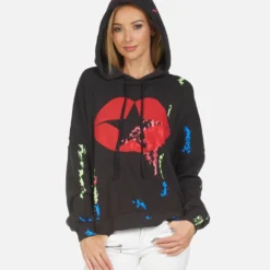Star Kiss Printed on Ultra Soft Lightweight Hoodie in Onyx/Paint Smudge by Lauren Moshi.