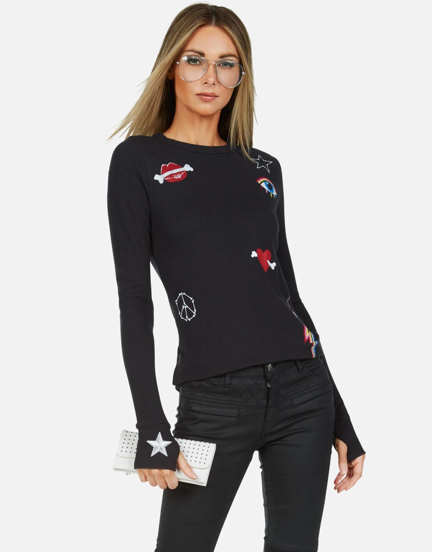 Bone Elements Printed on Ultra Soft Lightweight Thermal in Onyx by Lauren Moshi.
