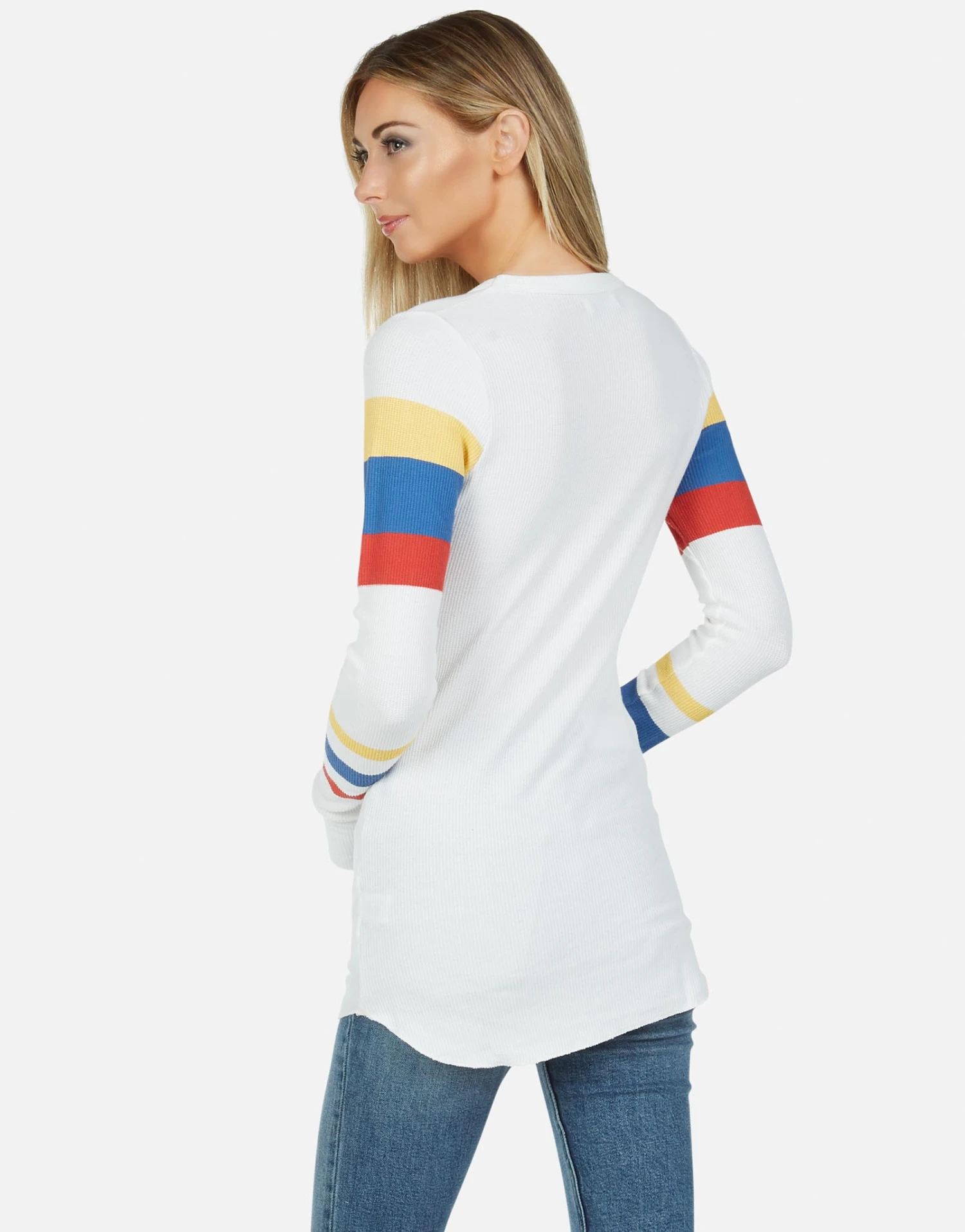 Happy Peace Love Printed on Ultra Soft Lightweight Thermal in Milk by Lauren Moshi.