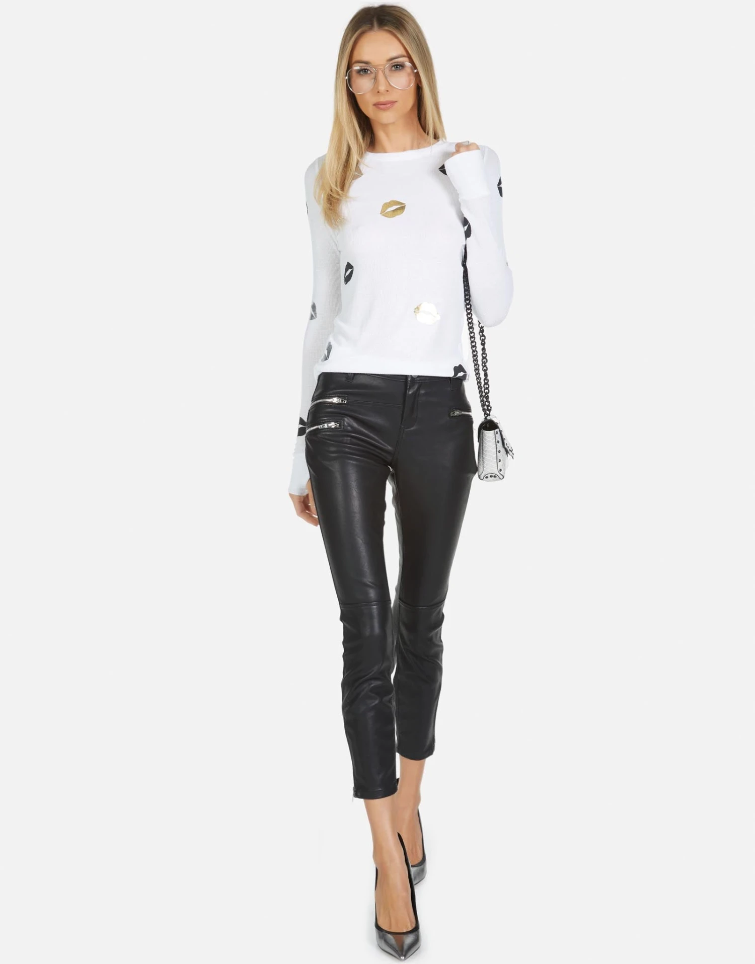 Foil Mini Kisses on Ultra Soft Lightweight Thermal in White by Lauren Moshi.