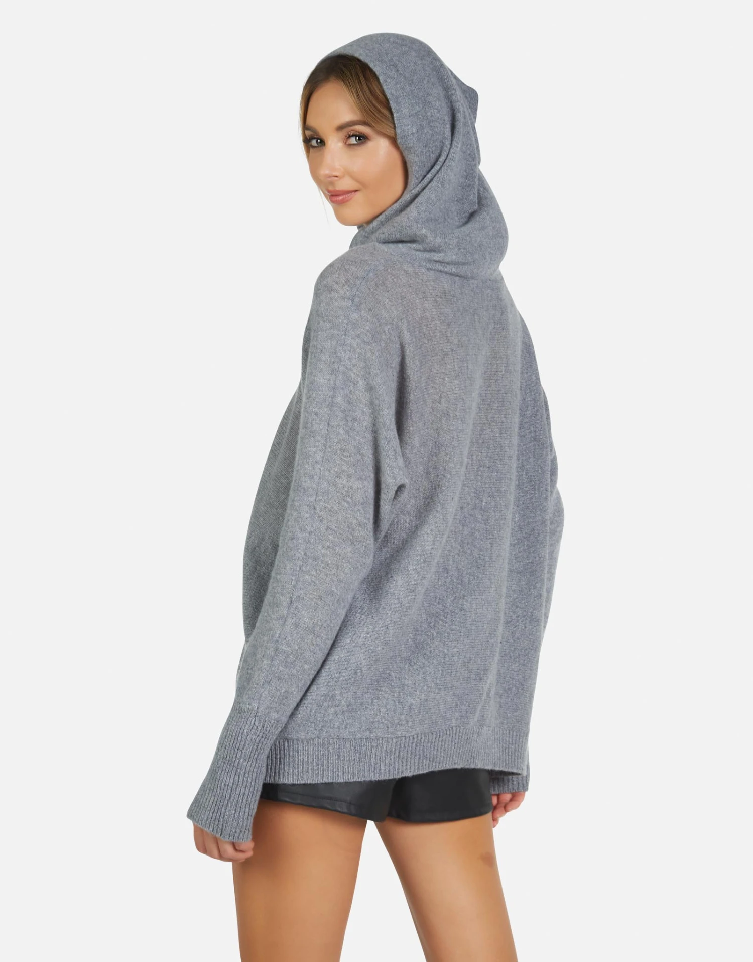 Led Zeppelin Printed on Ultra Soft Lightweight Cashmere Hoodie in Charcoal by Lauren Moshi.
