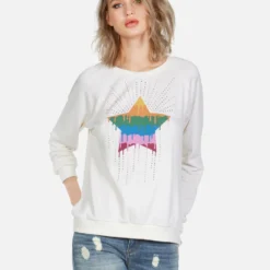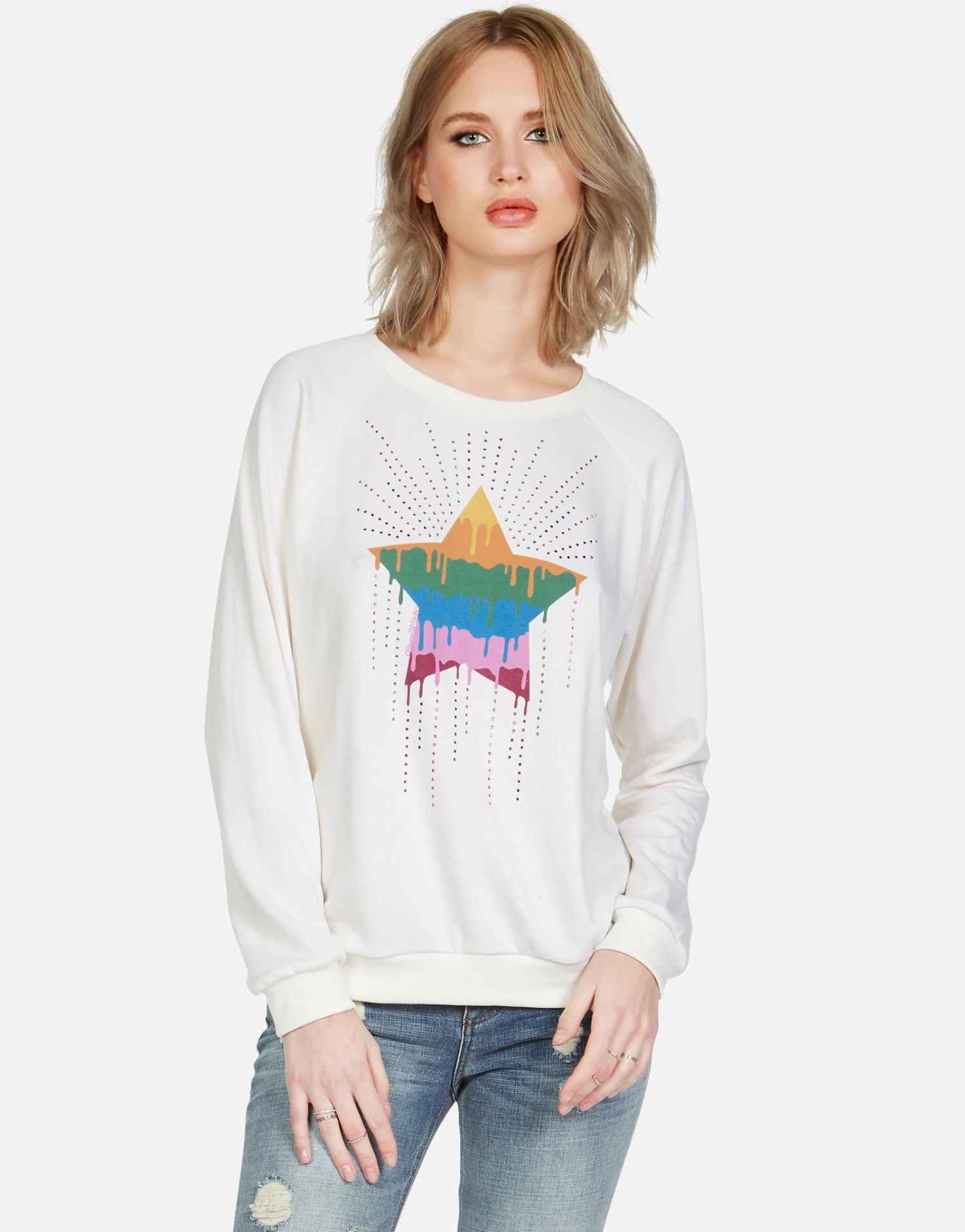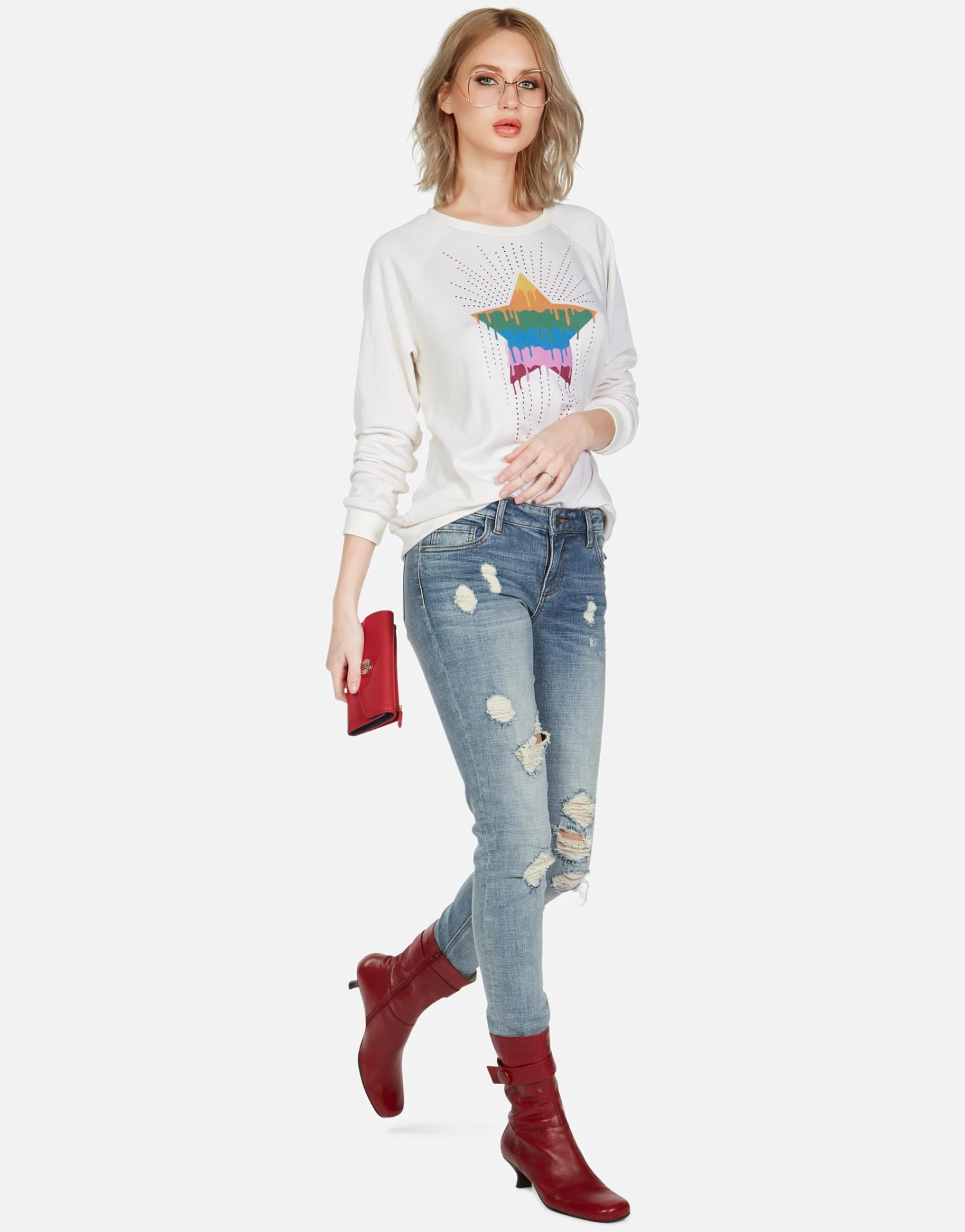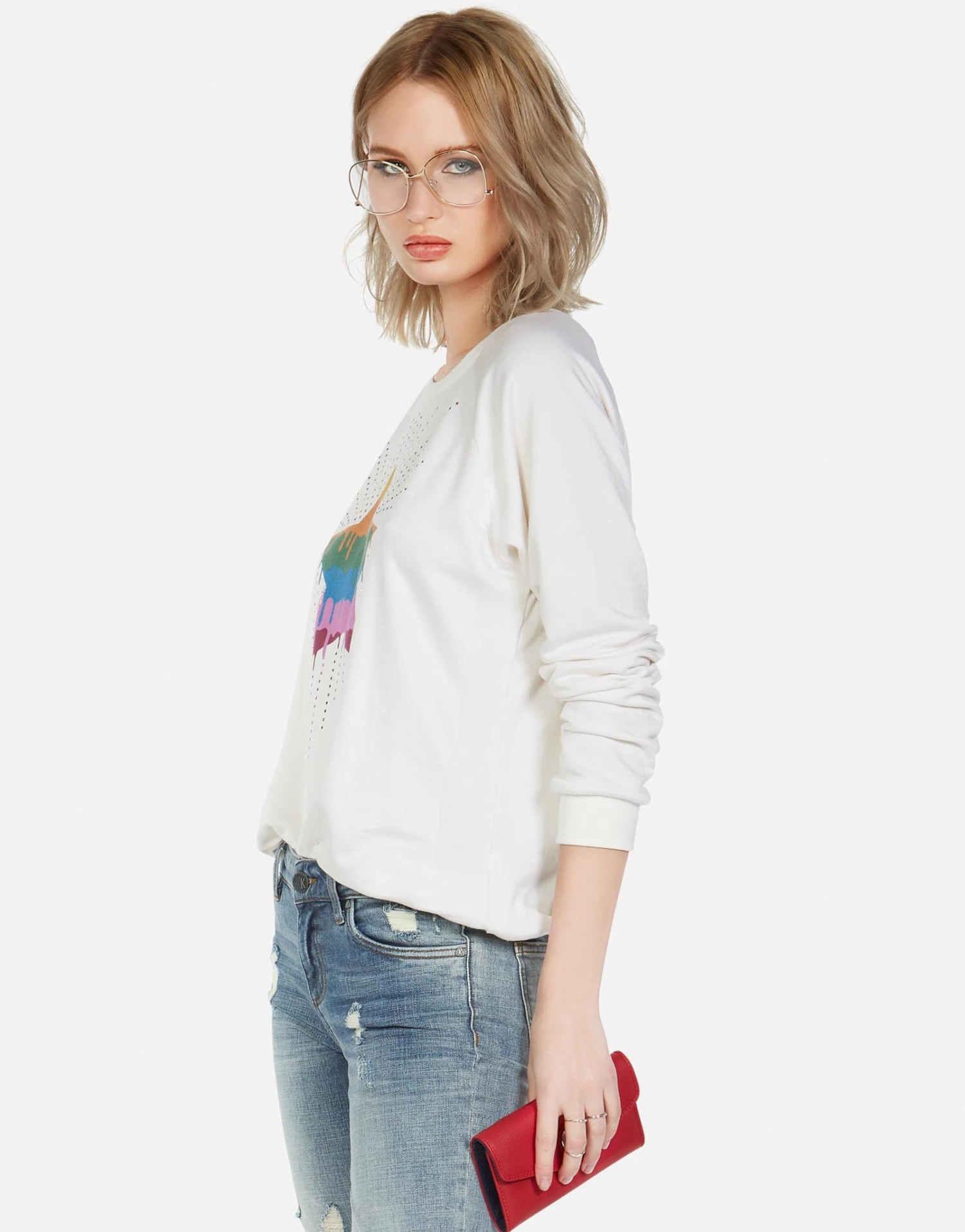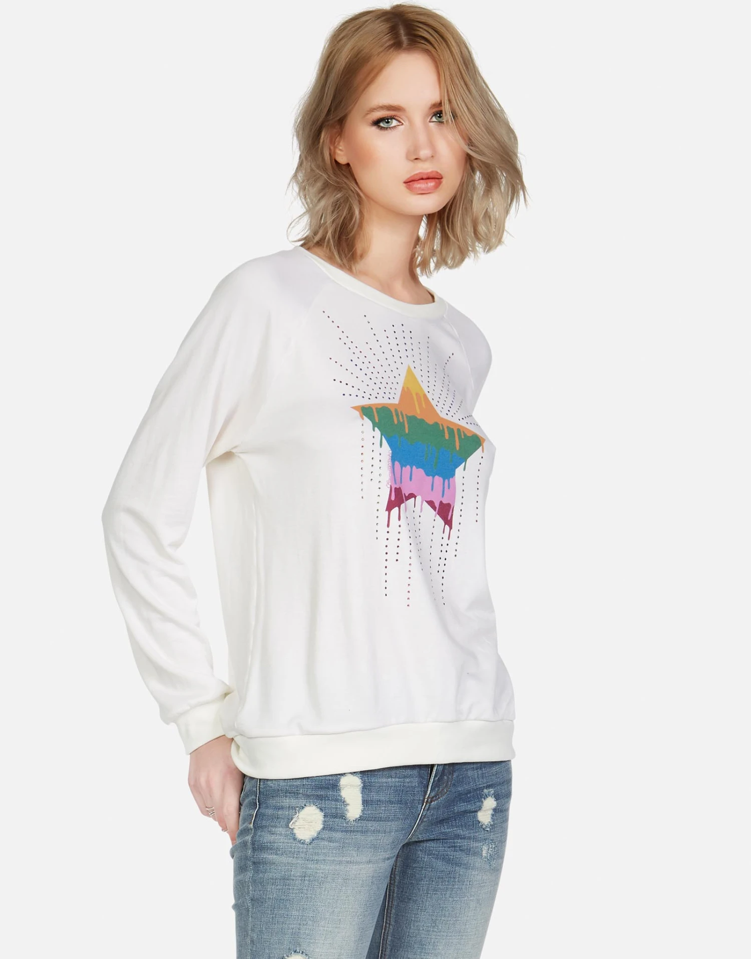 Dripping Star Printed on Ultra Soft Lightweight Pullover in Milk by Lauren Moshi.