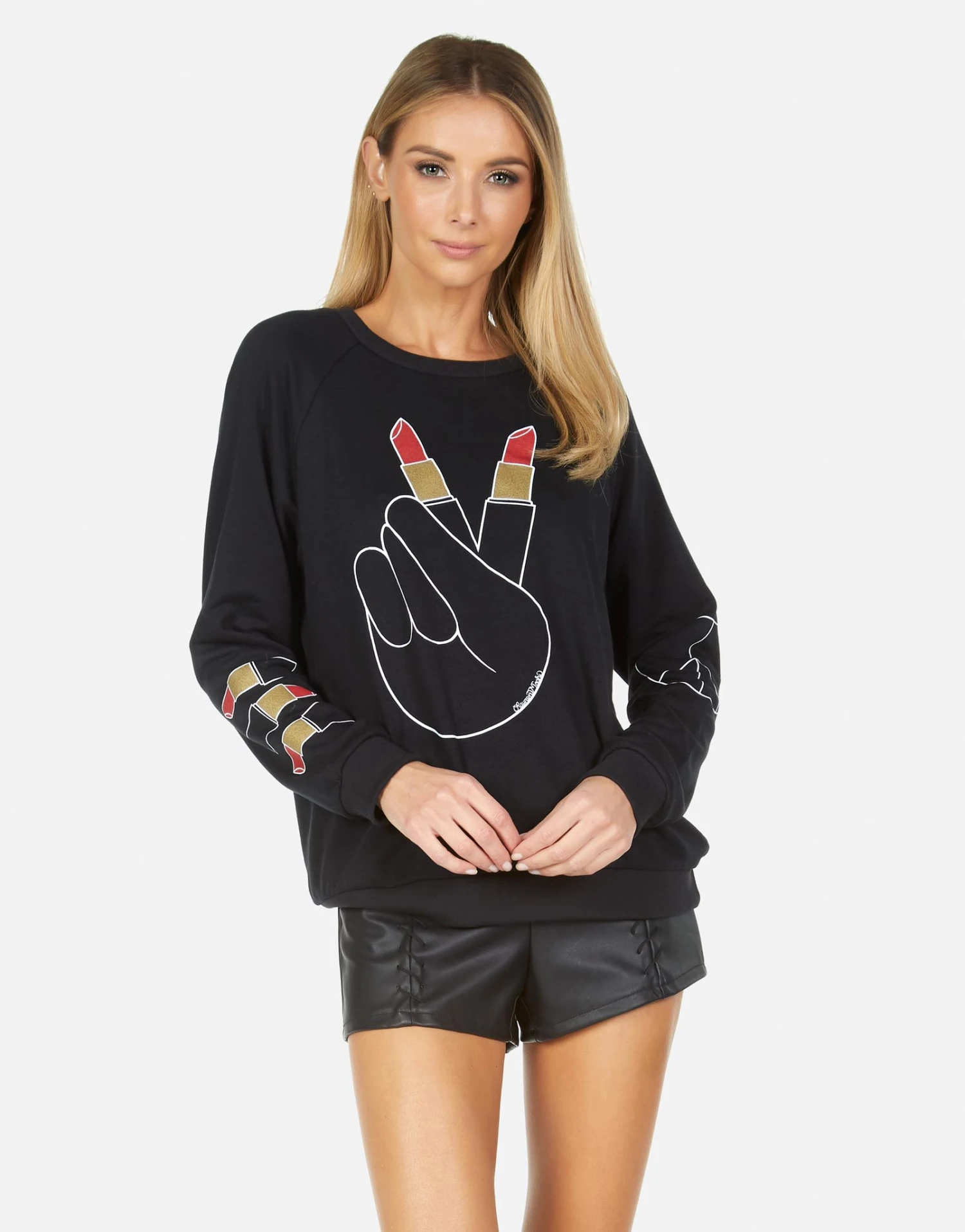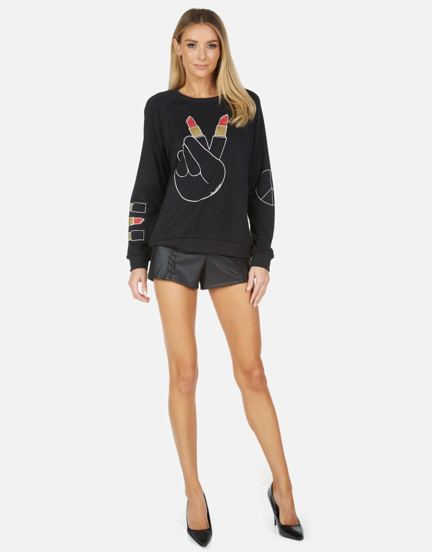 Lipstick Peace Printed on Ultra Soft Lightweight Tee in Black by Lauren Moshi.