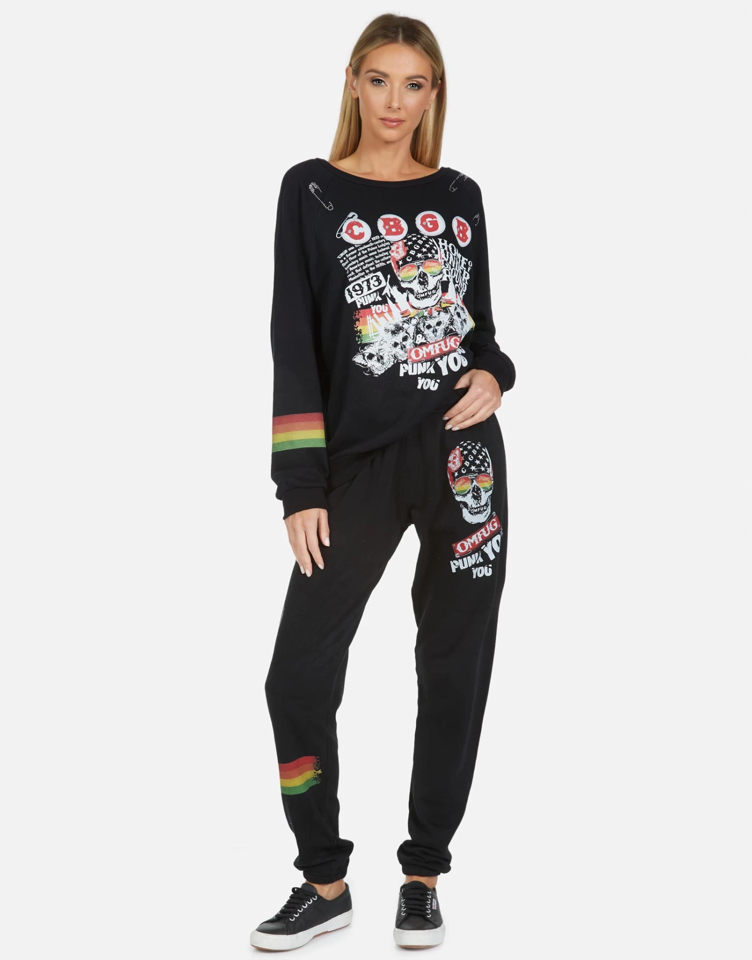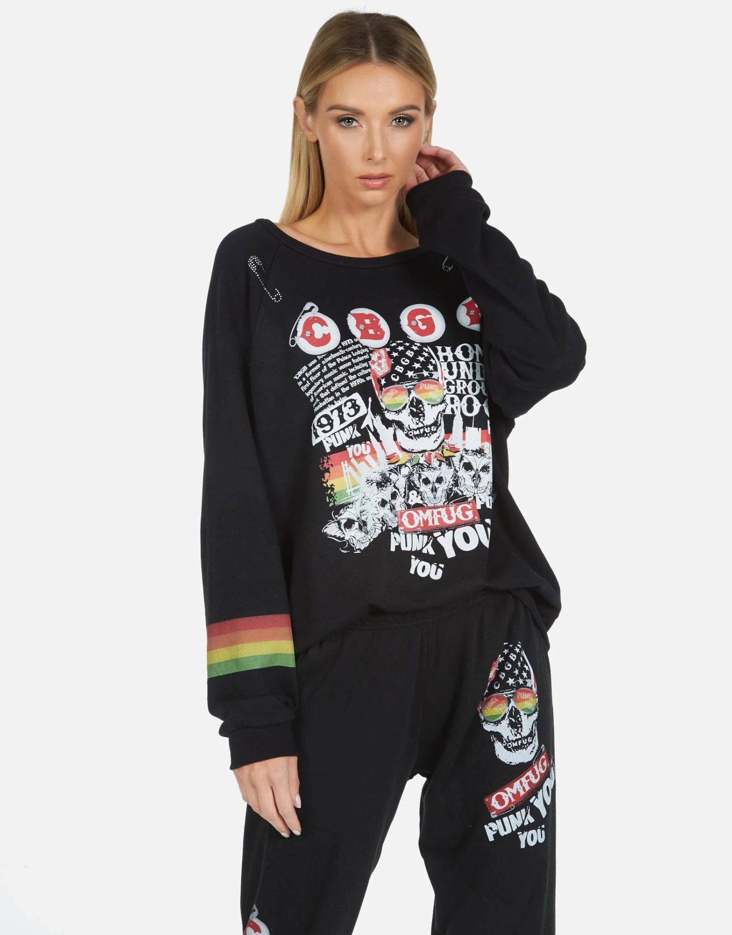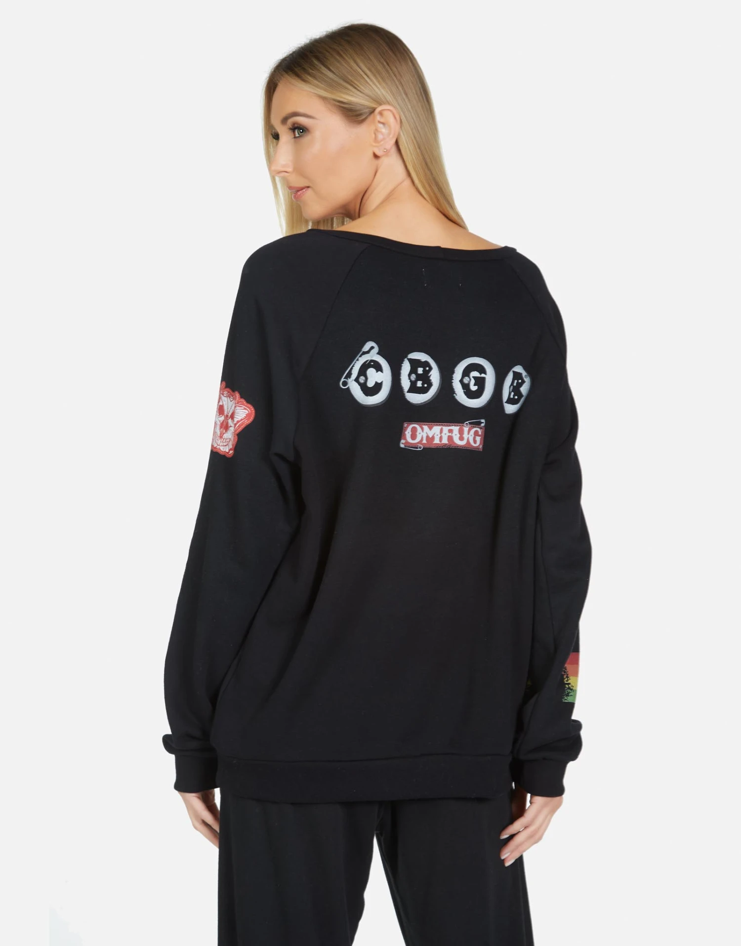 CBGB Printed on Ultra Soft Lightweight Pullover in Black by Lauren Moshi.