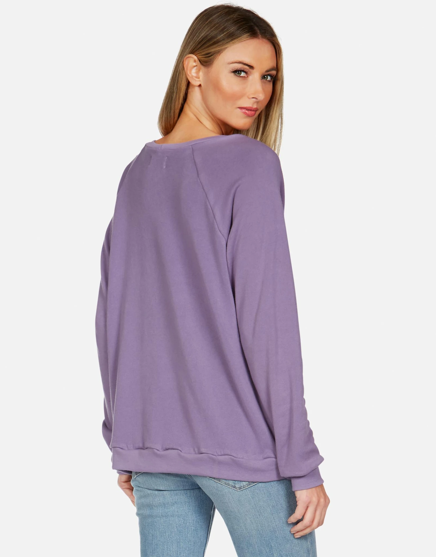 Striped Heart Teddy Loved Printed on Ultra Soft Lightweight Pullover in Dusty Lilac by Lauren Moshi.