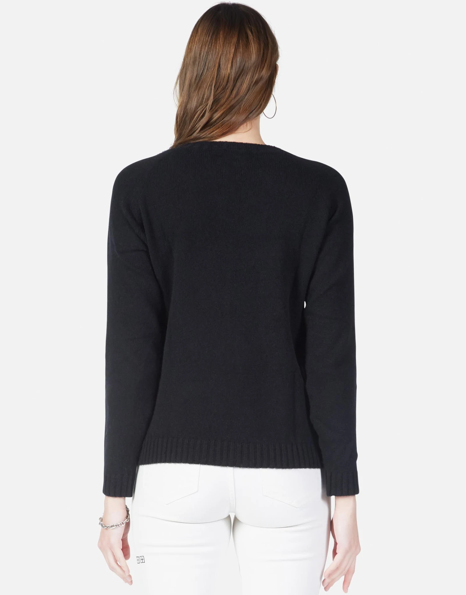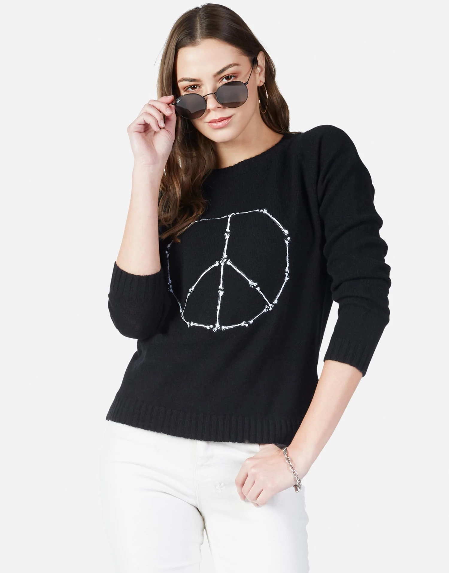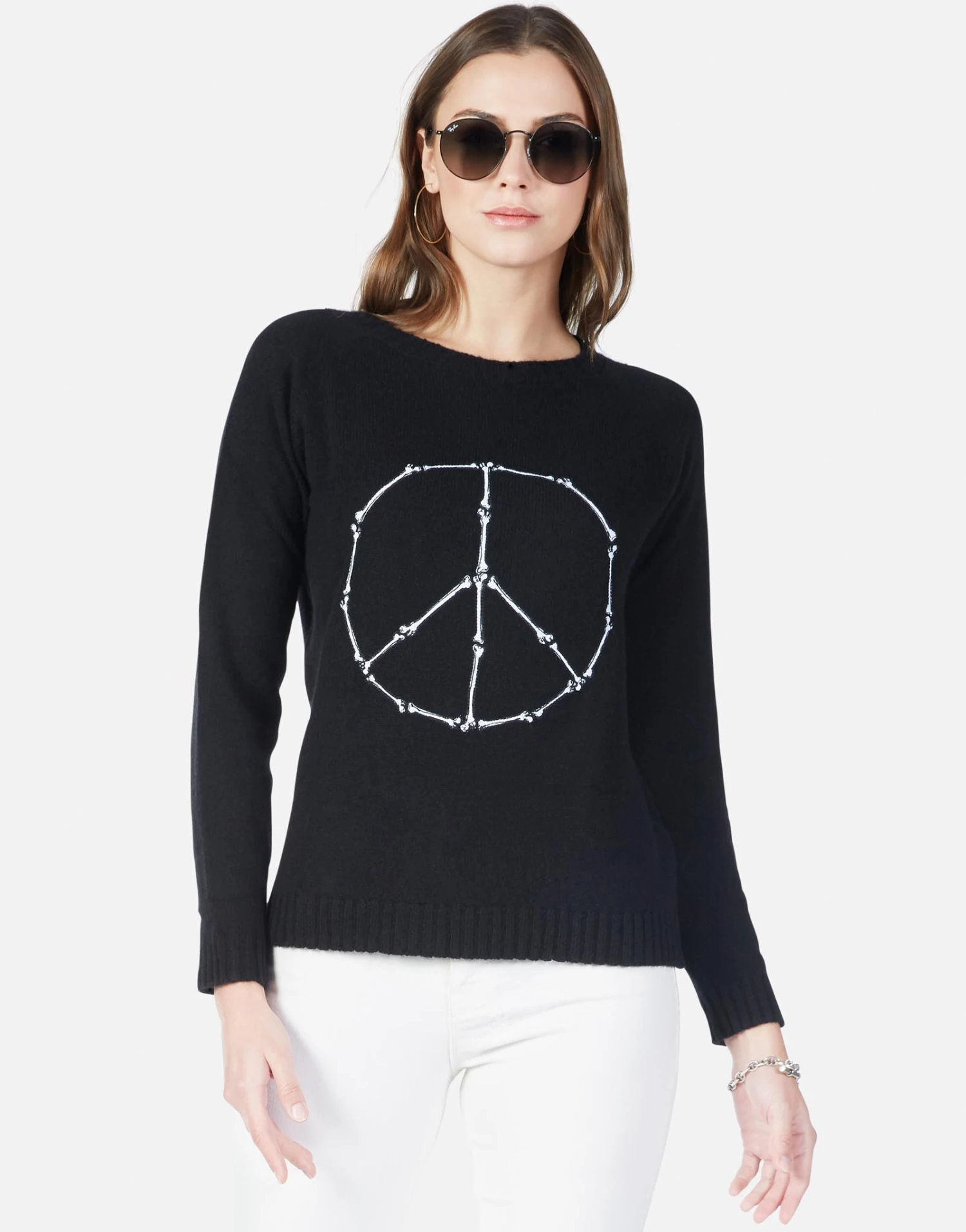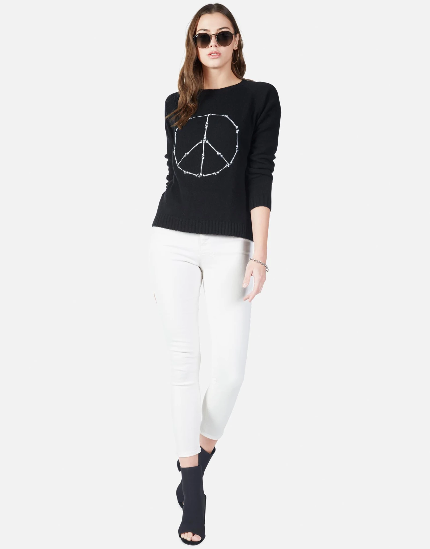 Peace Bones Embroidered on Super Soft Cashmere Sweater in Black by Lauren Moshi.
