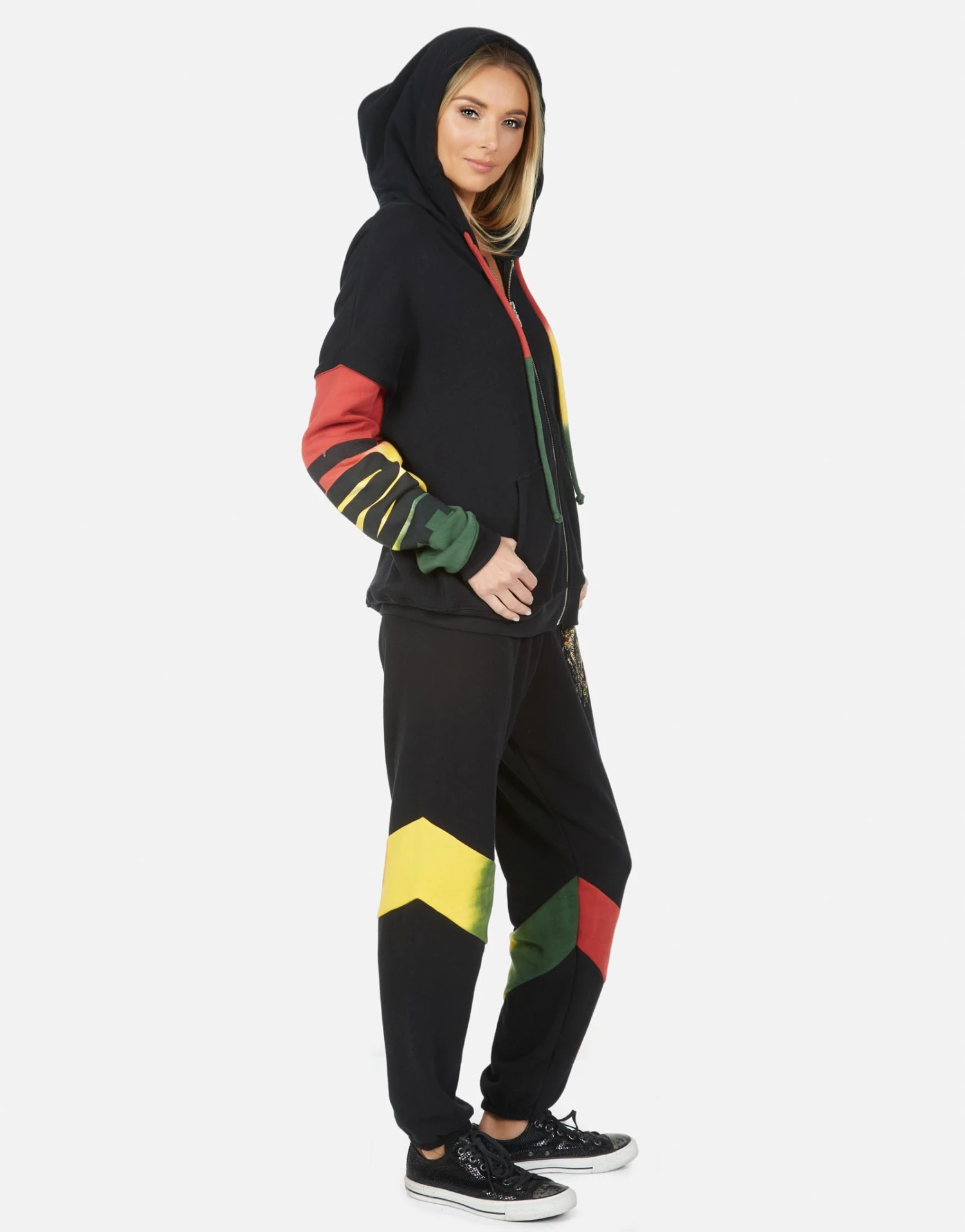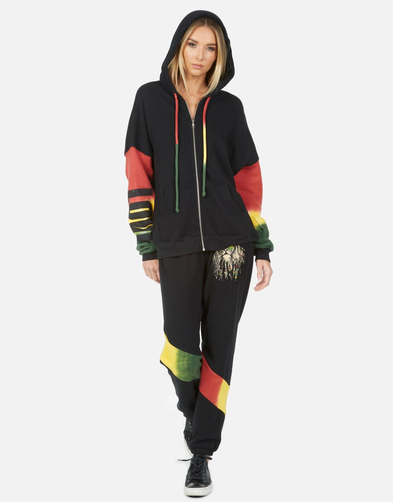 Rasta Lion Printed on Ultra Soft Lightweight Hoodie in Black/Rasta by Lauren Moshi.