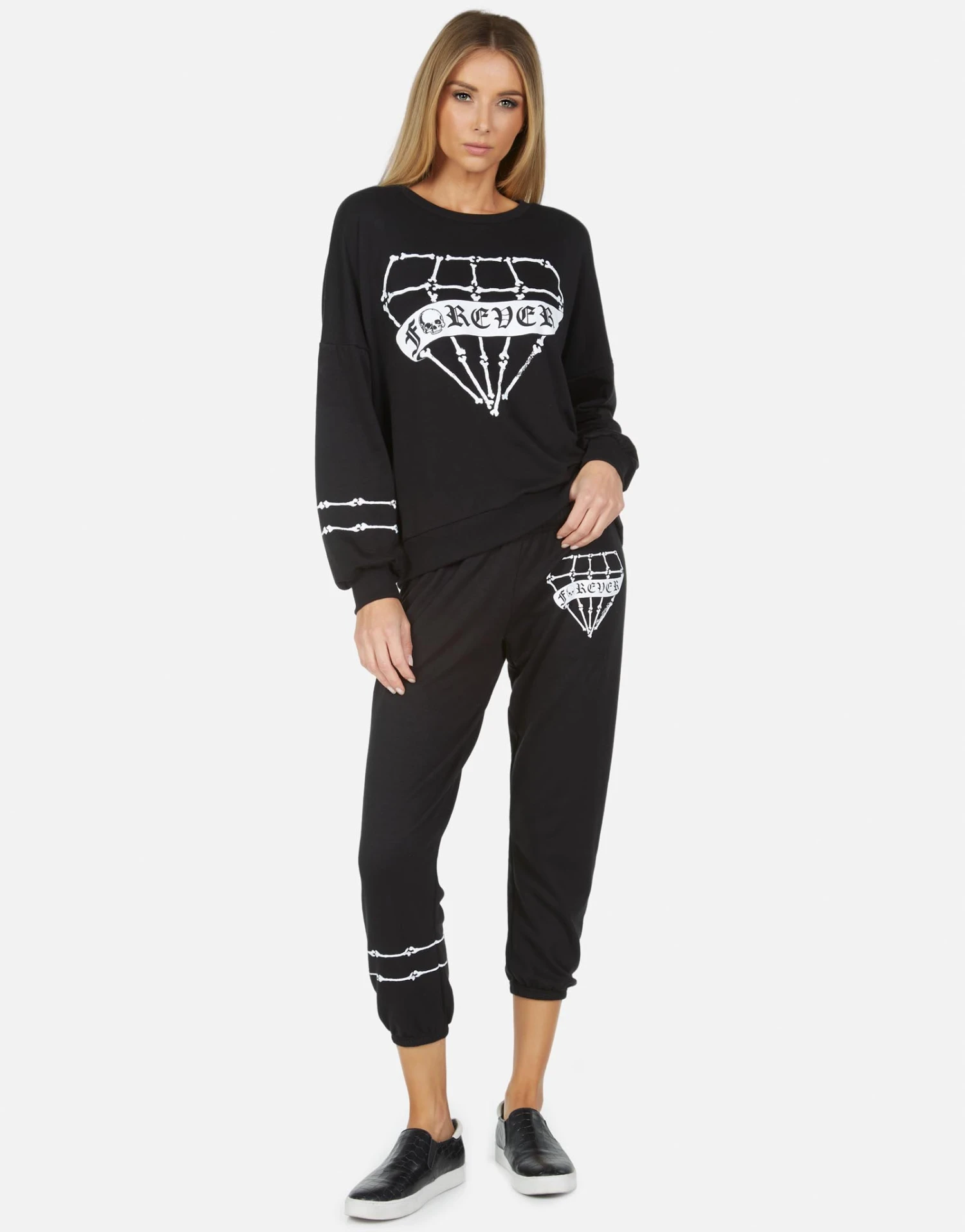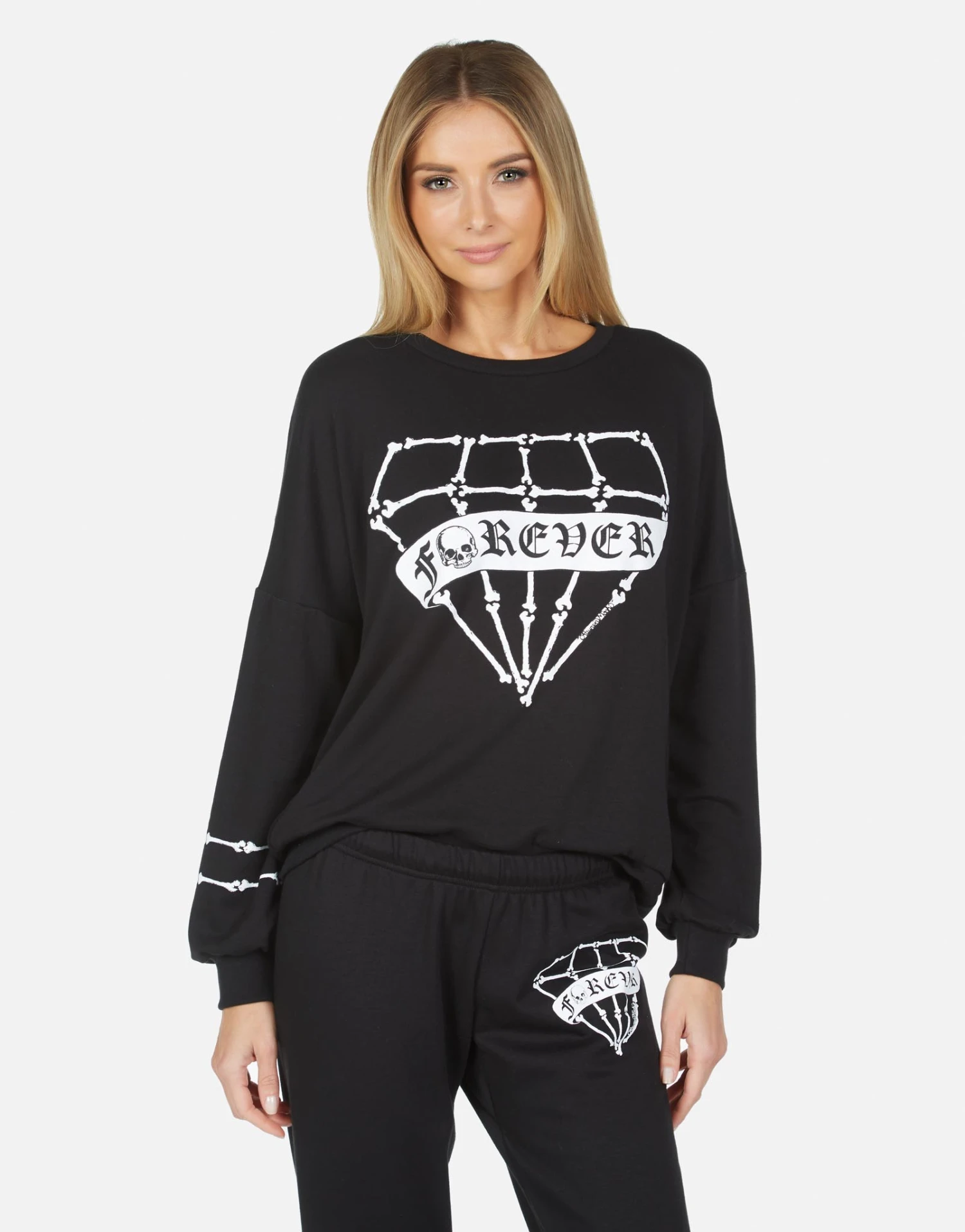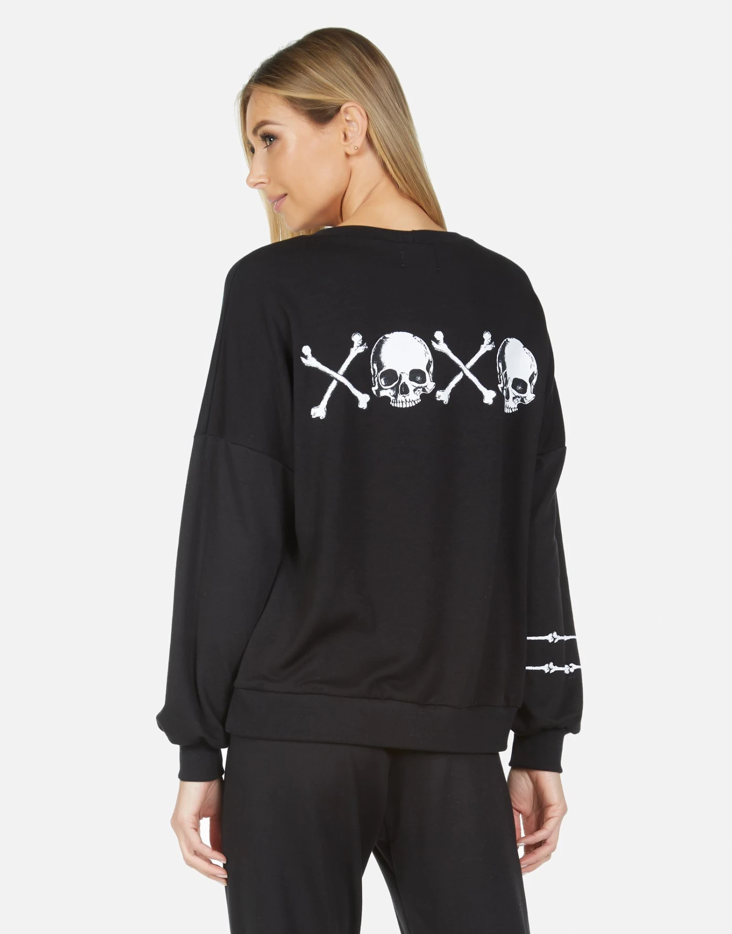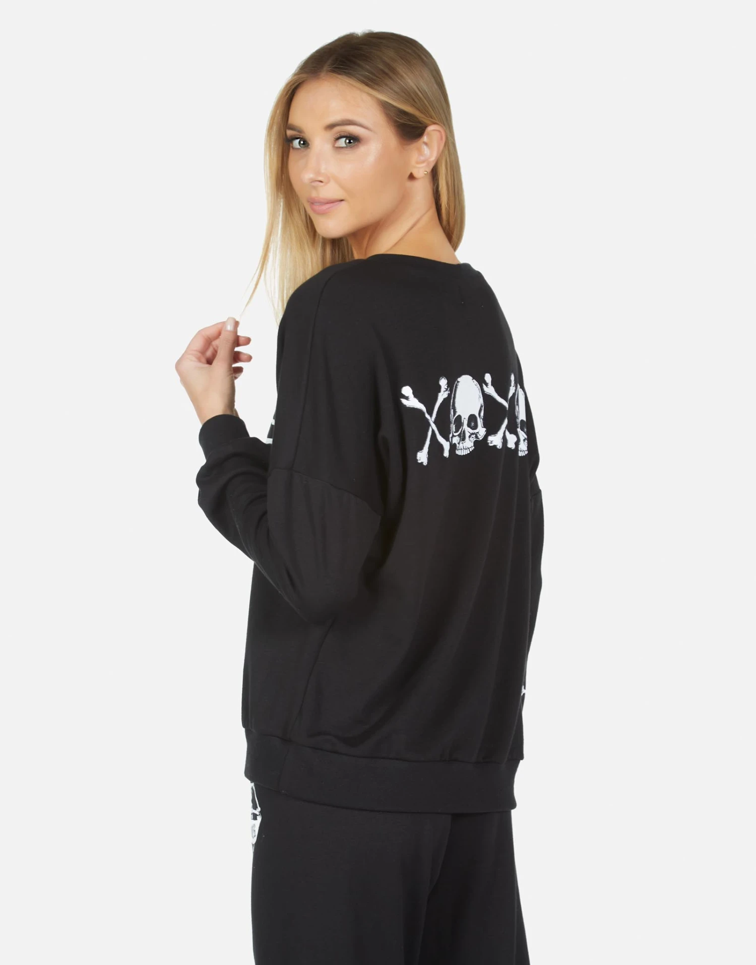 Bone Diamond Printed on Ultra Soft Lightweight Pullover in Black by Lauren Moshi.