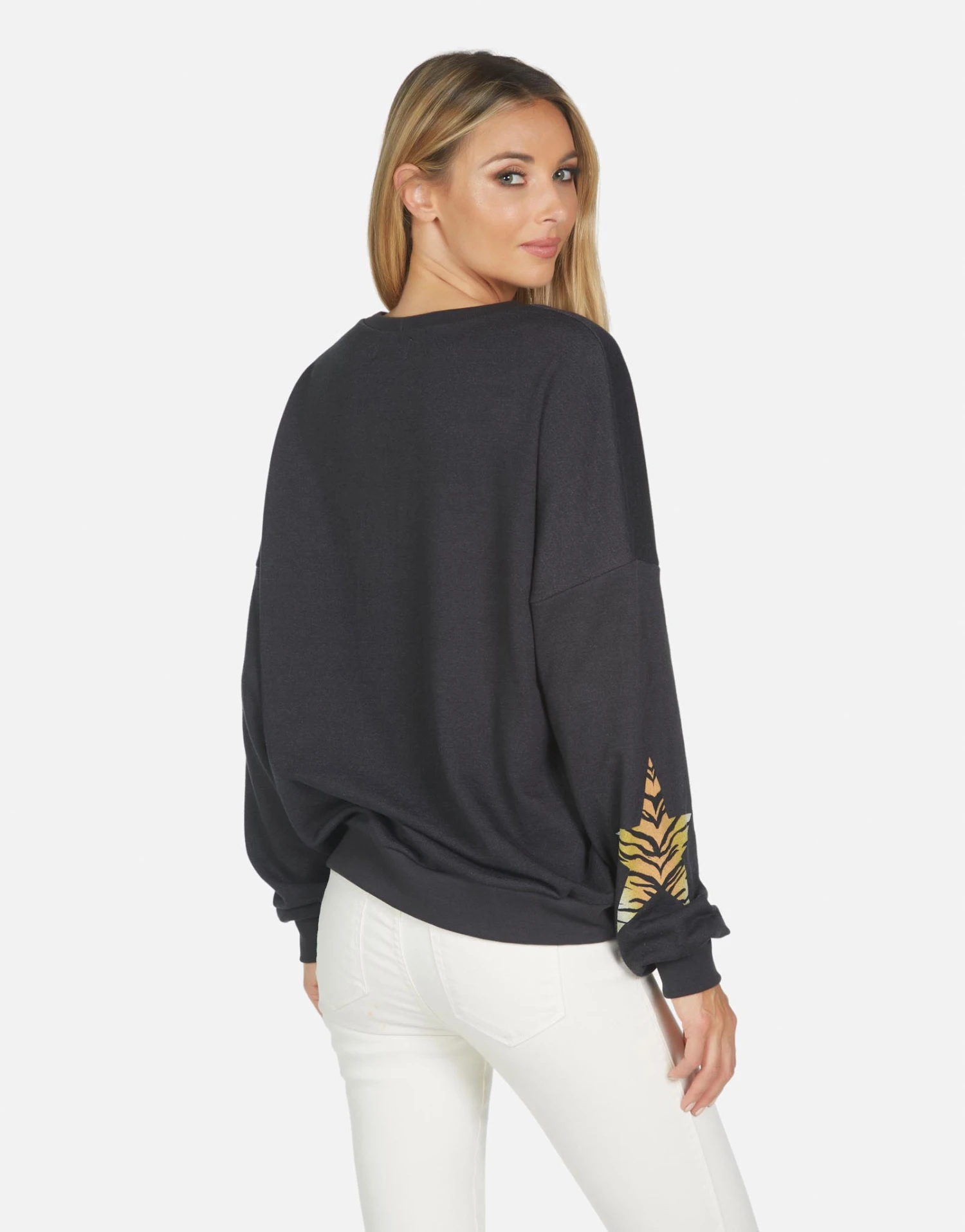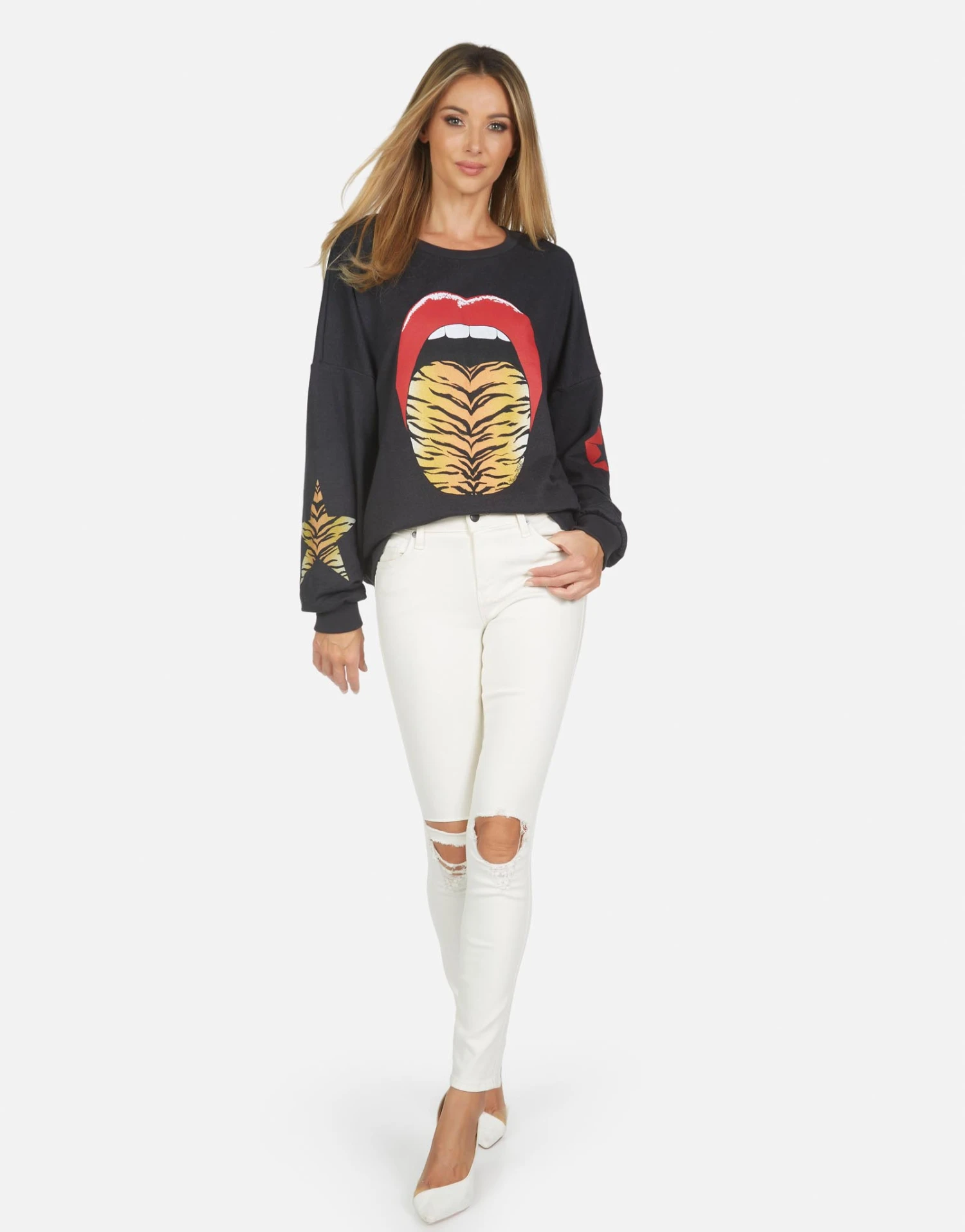Tiger Tongue Printed on Ultra Soft Lightweight Pullover in Onyx by Lauren Moshi.