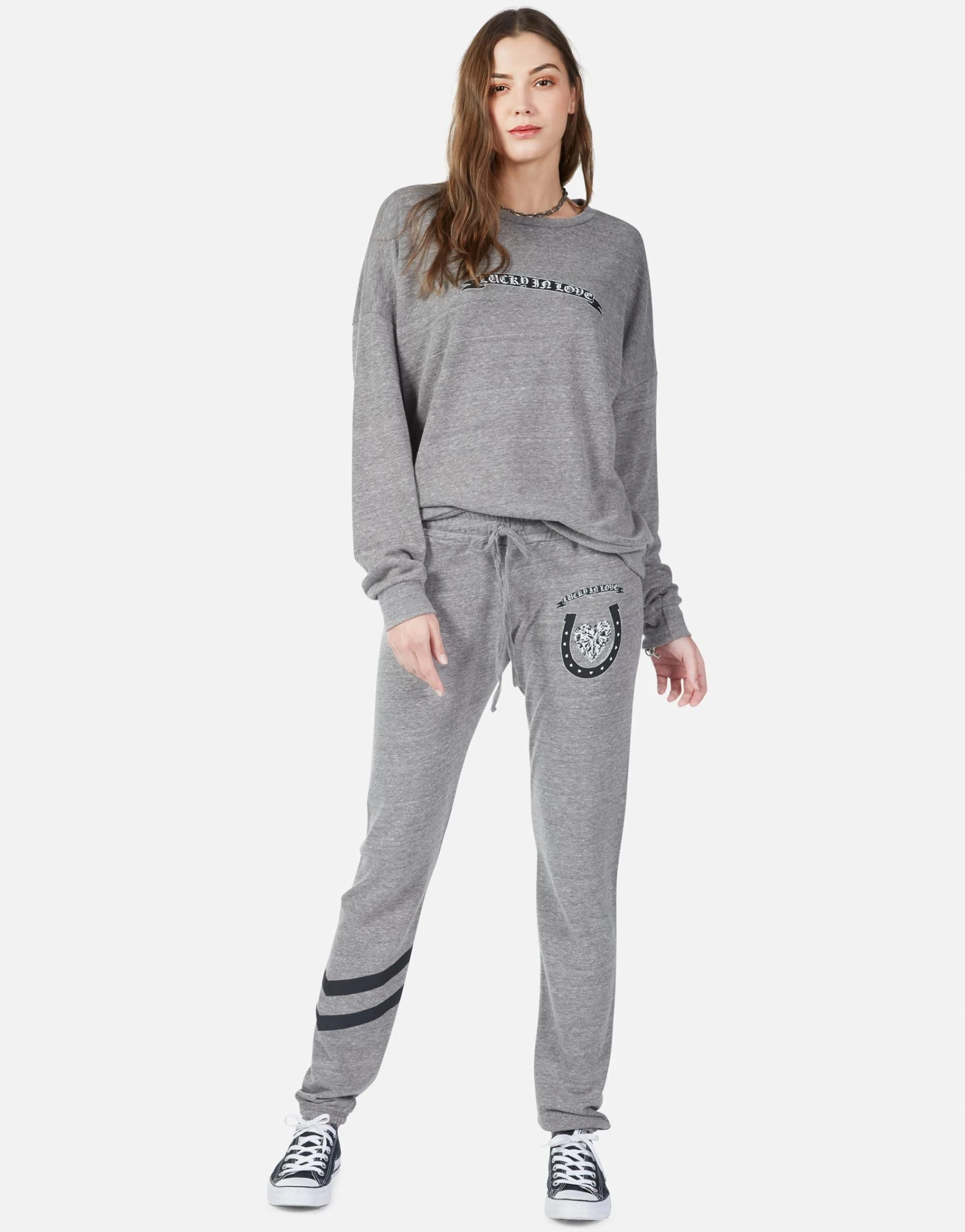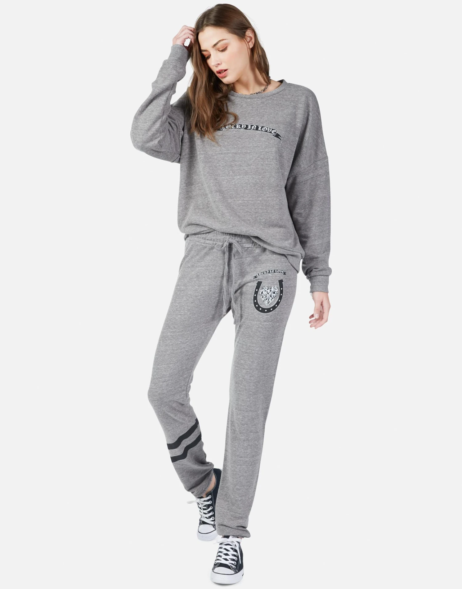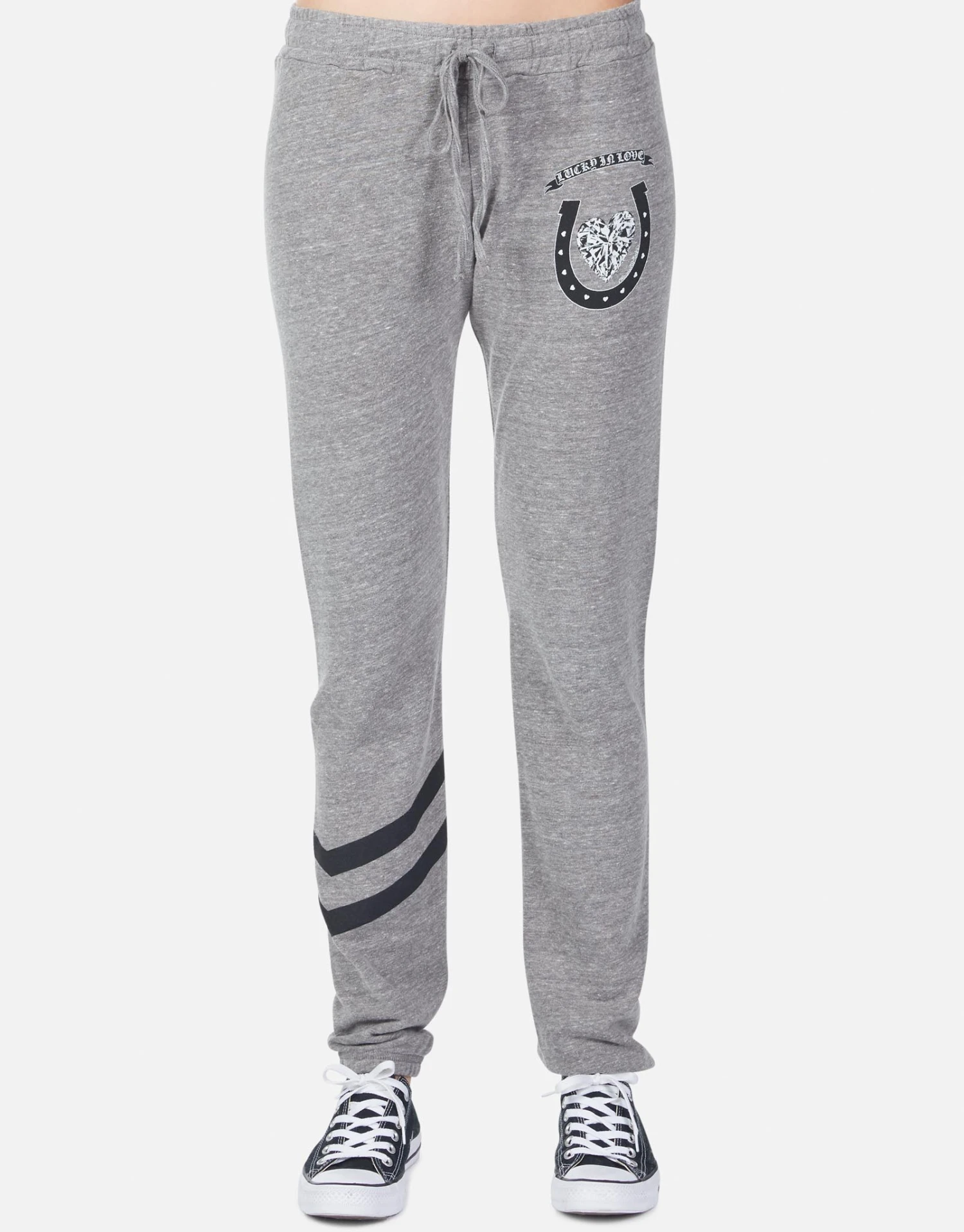 Lucky in Love Printed on Ultra Soft Lightweight Jogger in Heather Grey by Lauren Moshi.