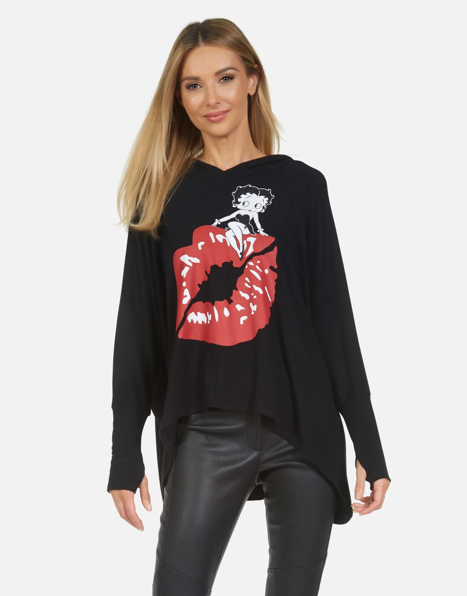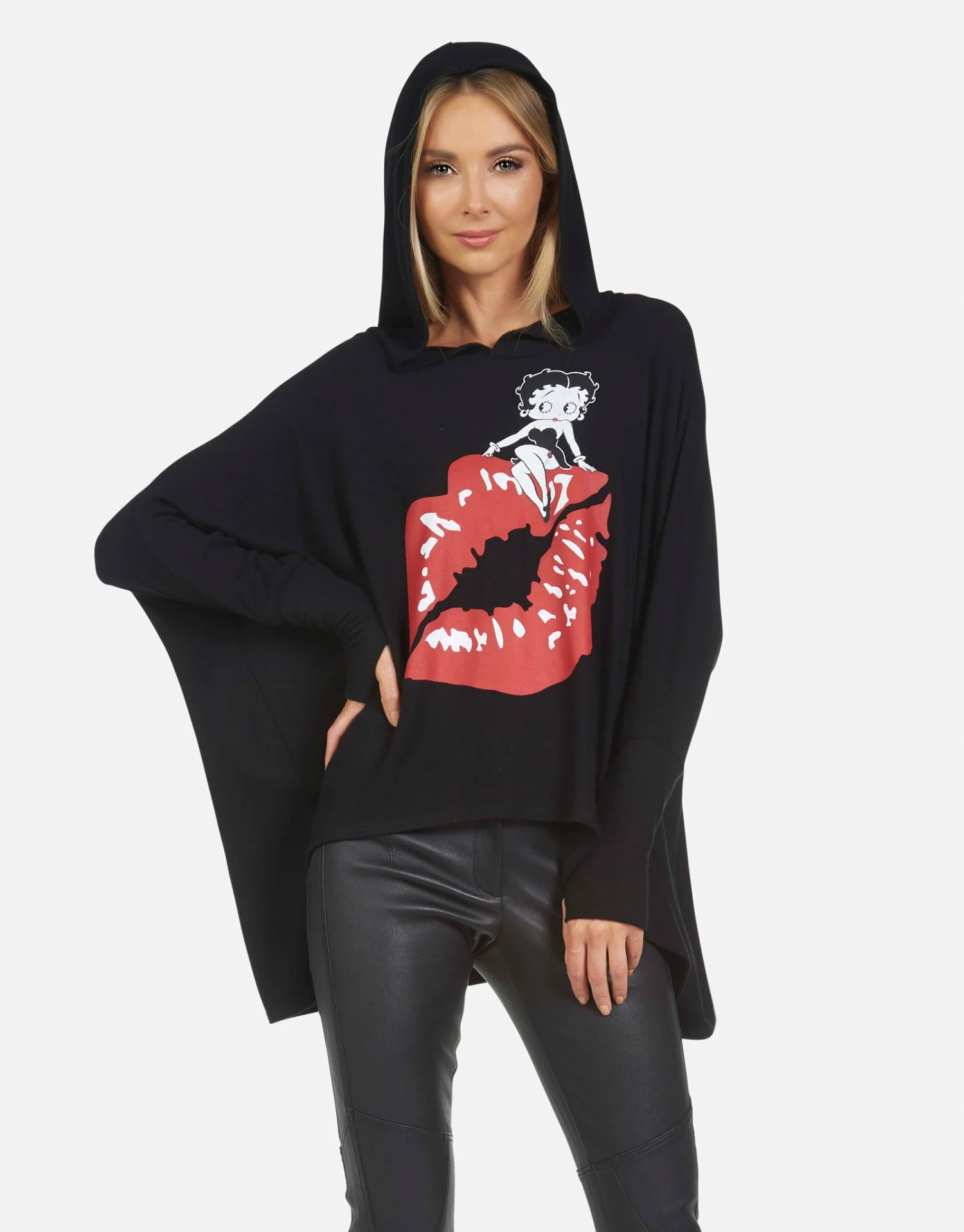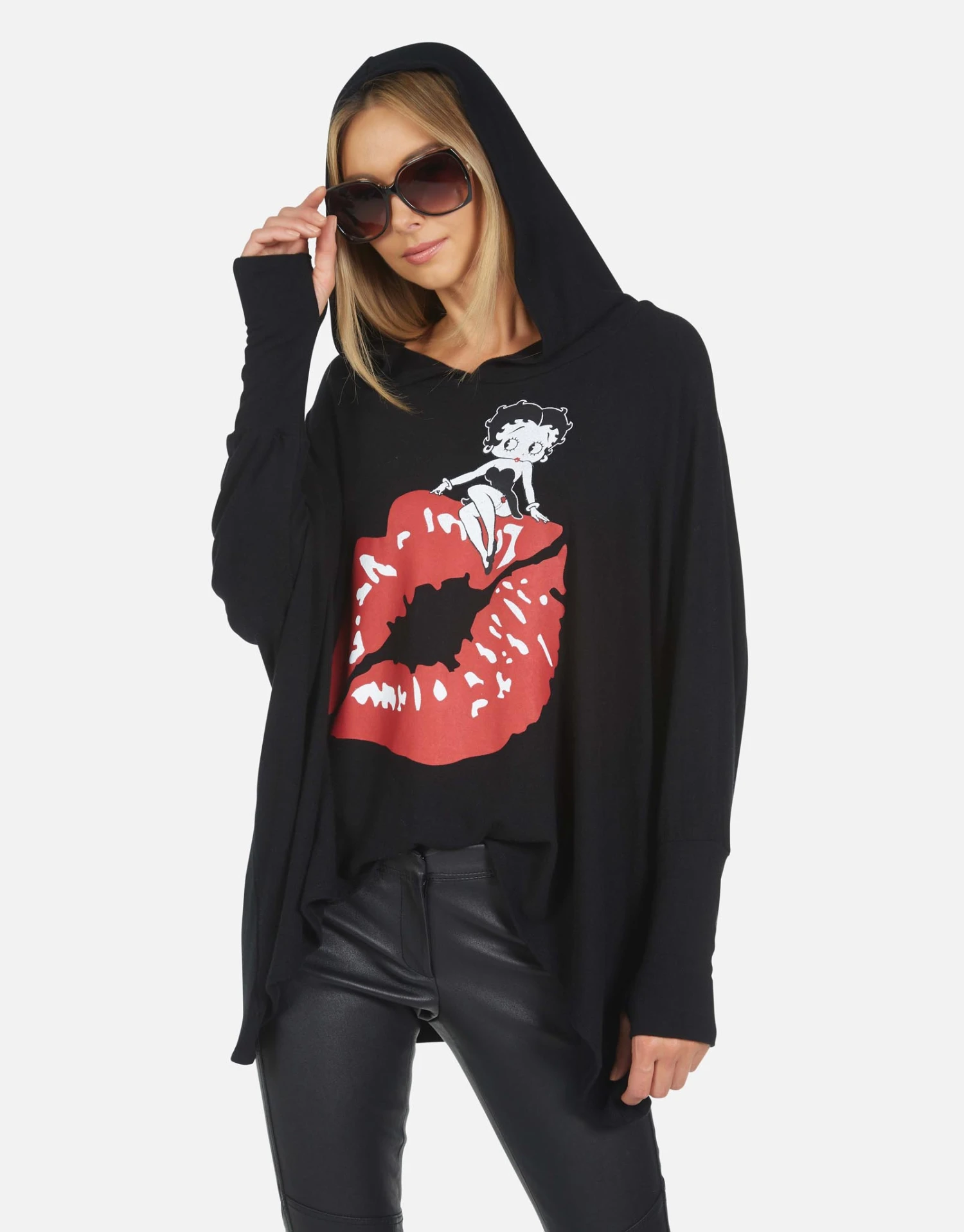 Betty Boop Printed on Ultra Soft Lightweight Hoodie in Black by Lauren Moshi.