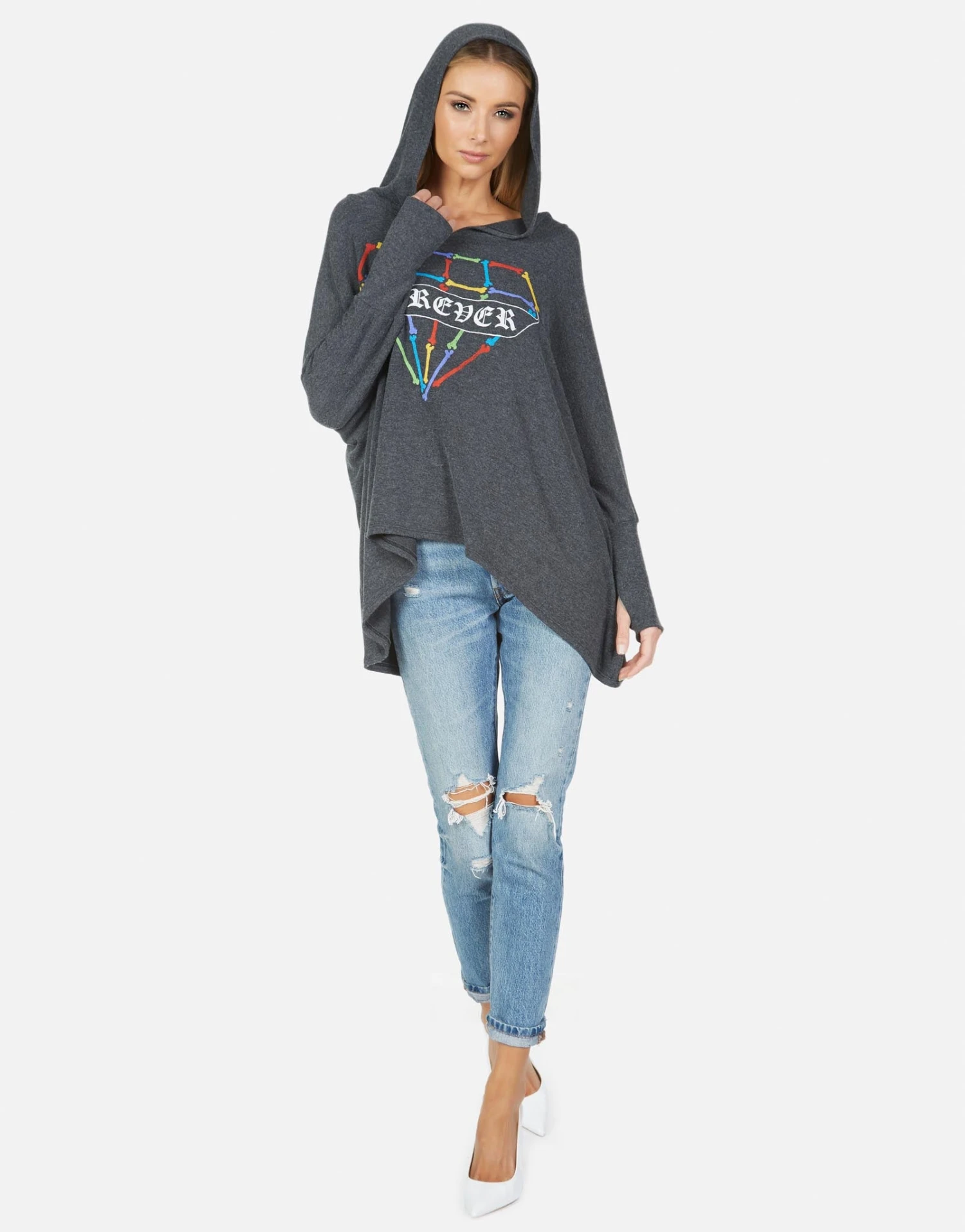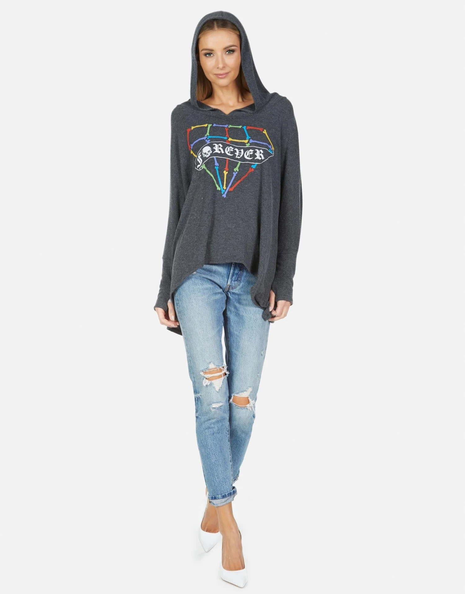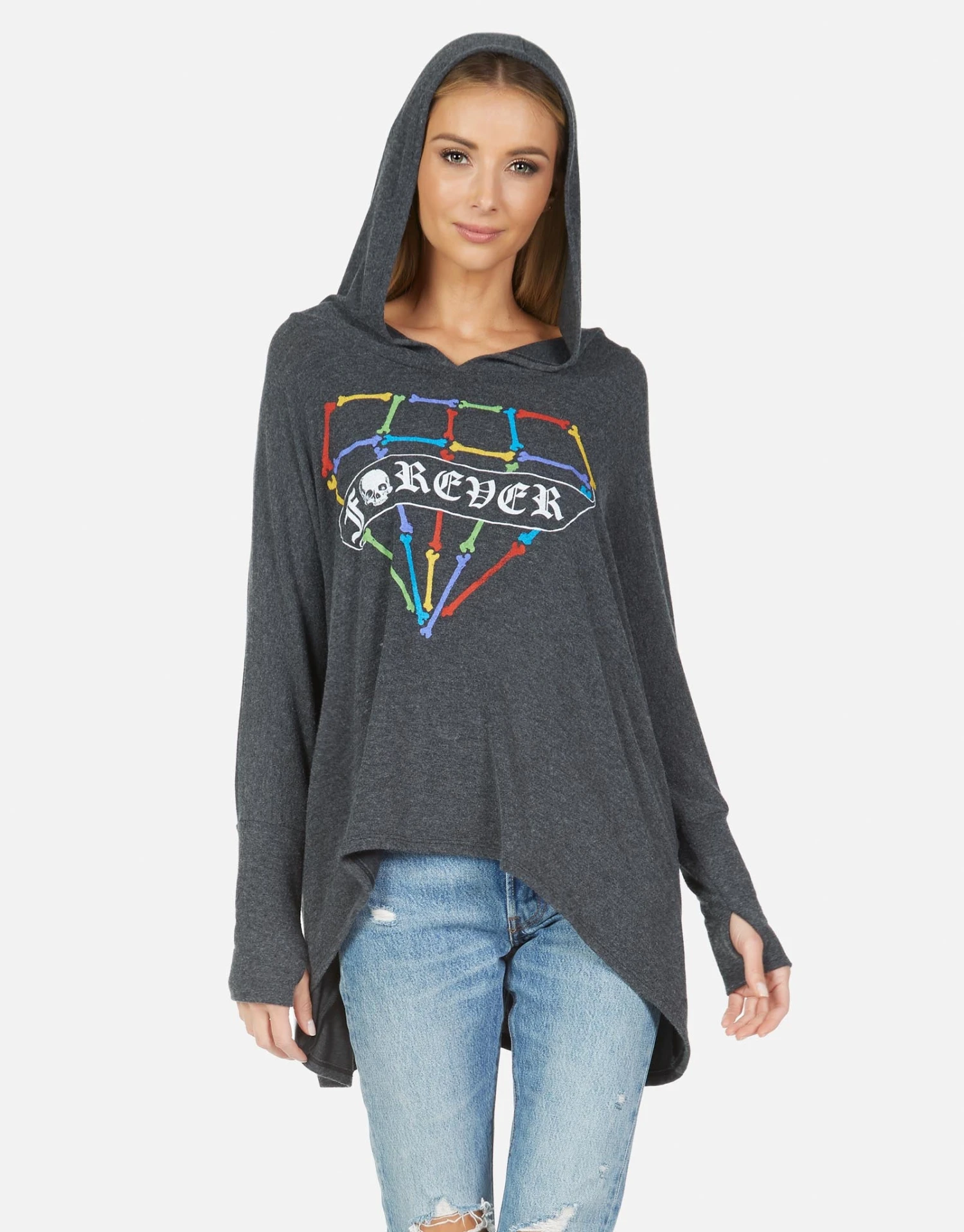 Bone Diamond Printed on Ultra Soft Lightweight Hoodie in Heather Black by Lauren Moshi.