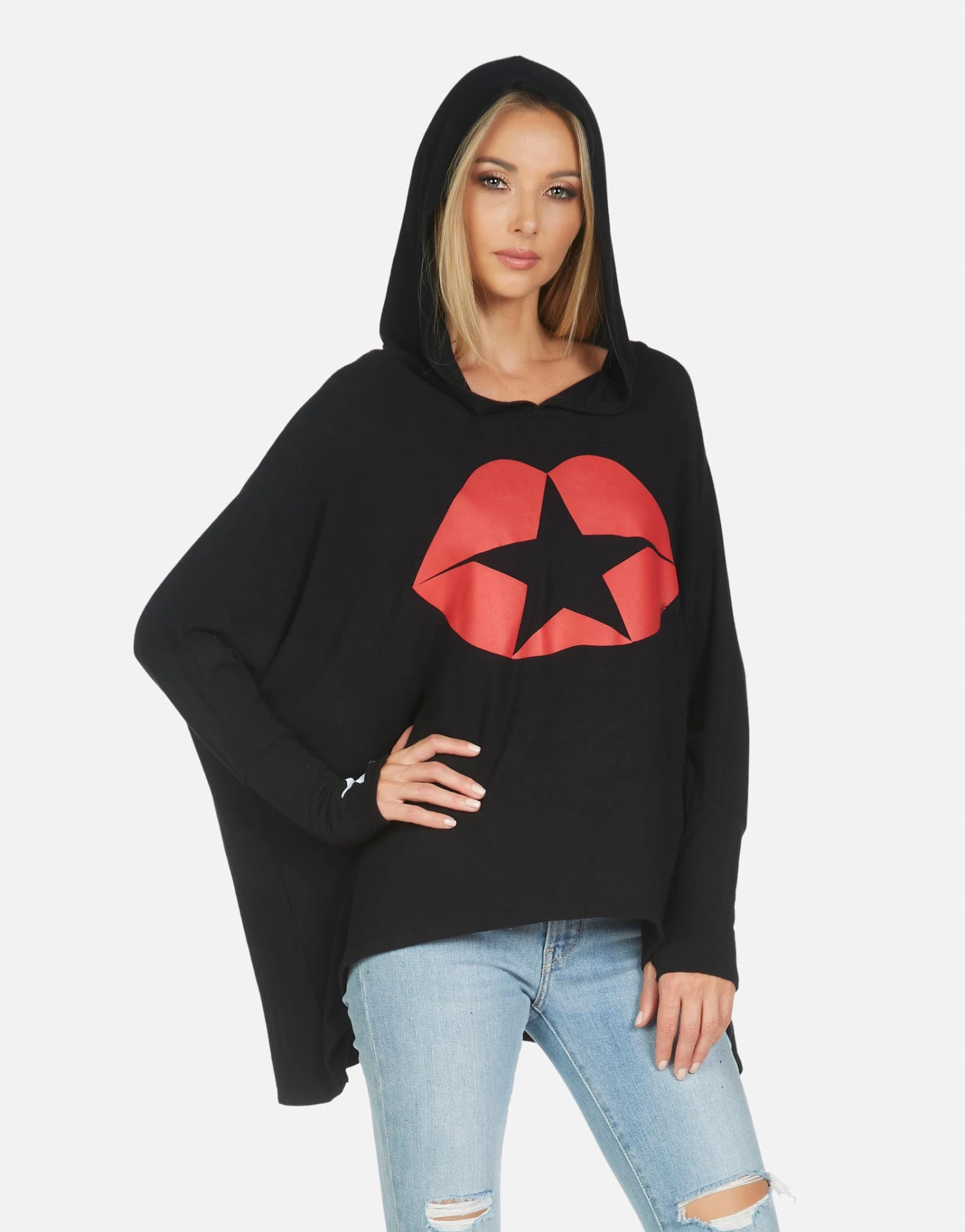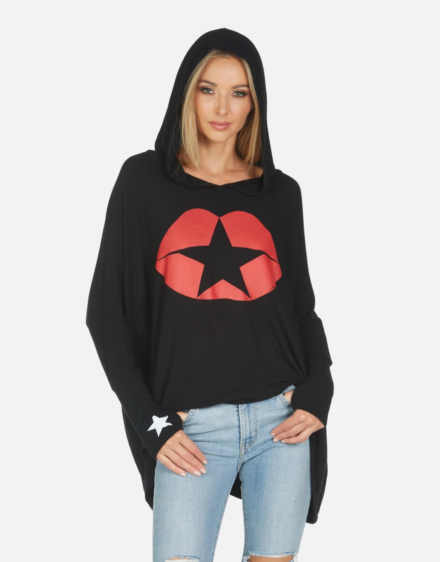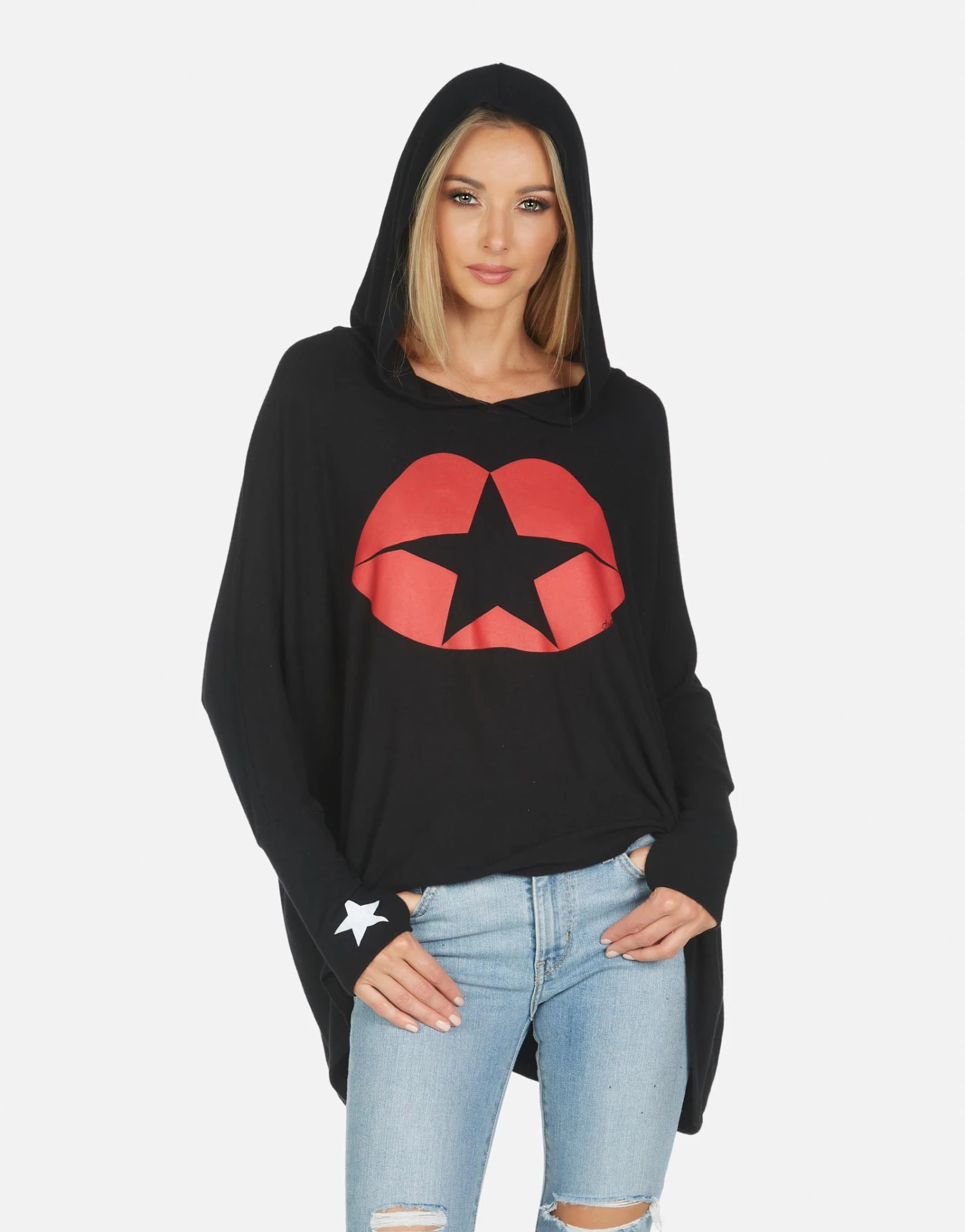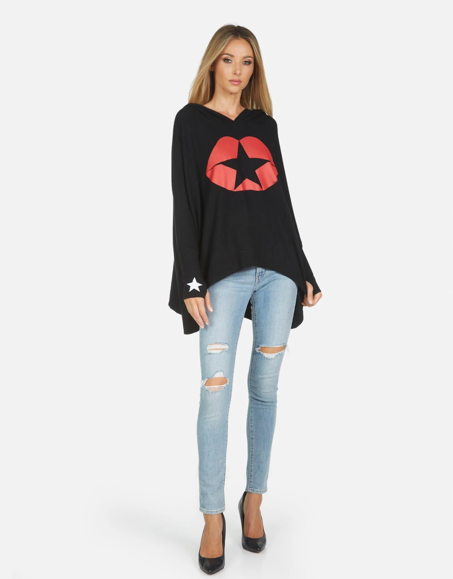 Star Kiss Printed on Ultra Soft Lightweight Hoodie in Black by Lauren Moshi.