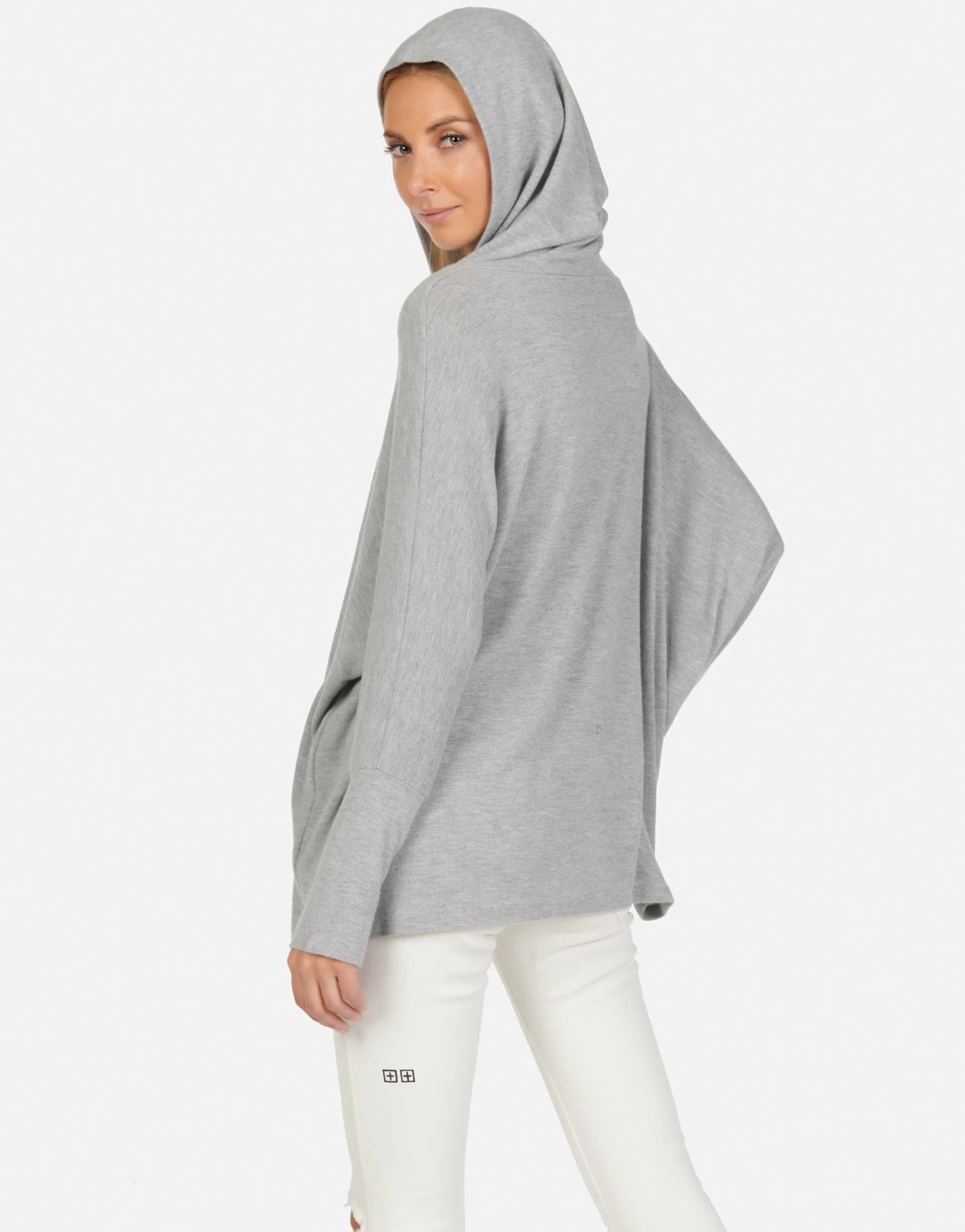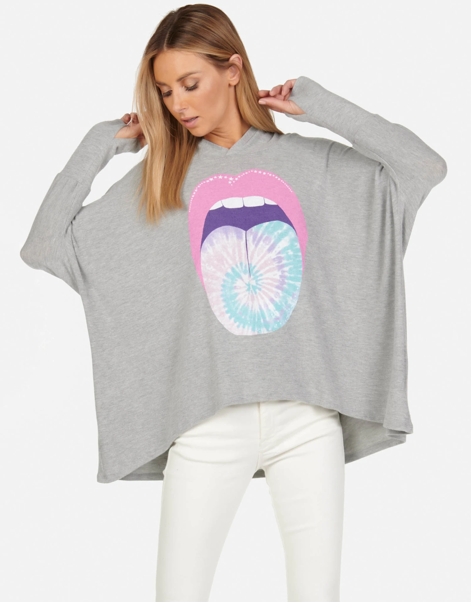 Tie Dye Tongue Printed on Ultra Soft Lightweight Hoodie in Heather Grey & Jet Black by Lauren Moshi.