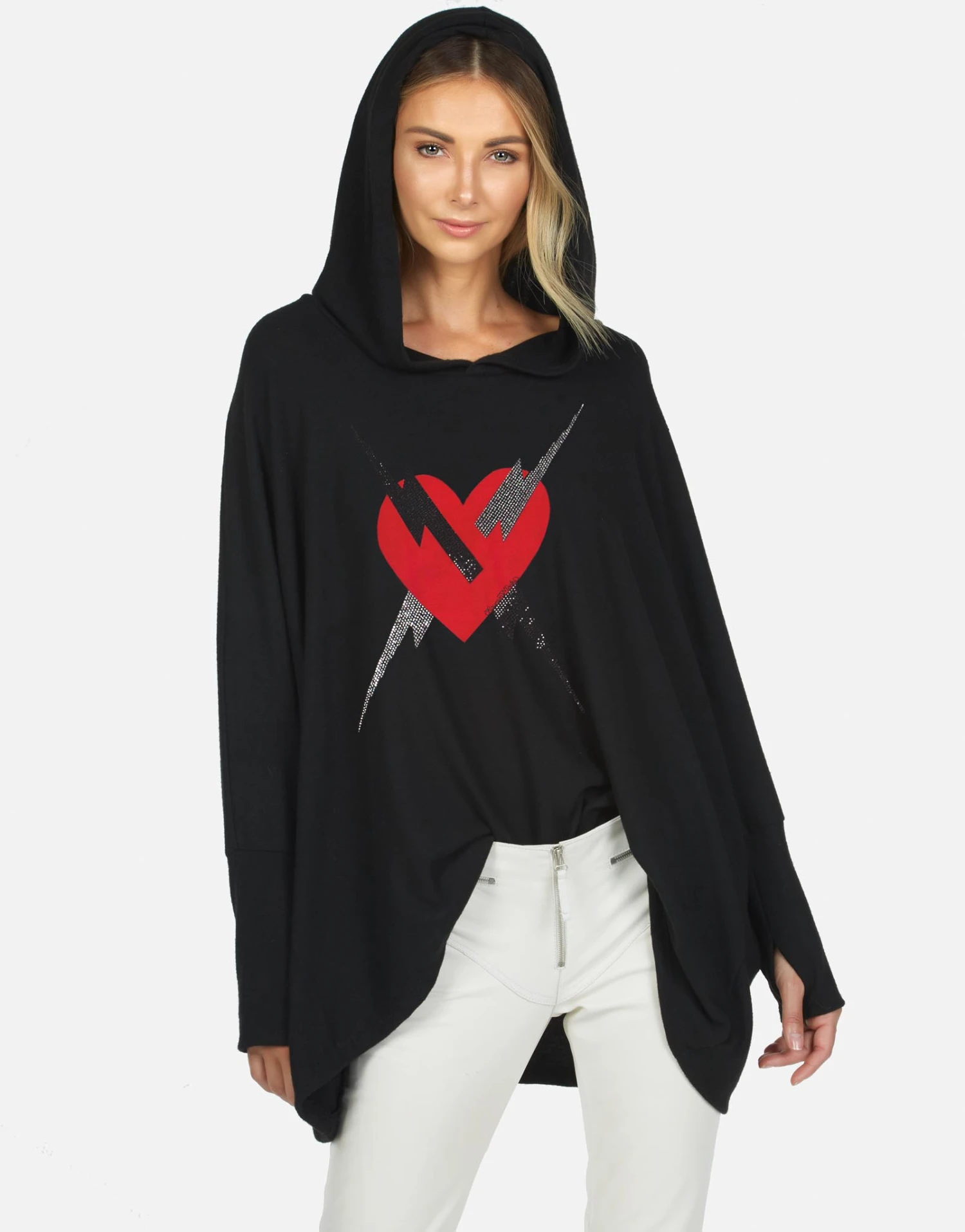 WEB EXCLUSIVE | Lightning Love Printed on Ultra Soft Lightweight Hoodie in Black by Lauren Moshi.